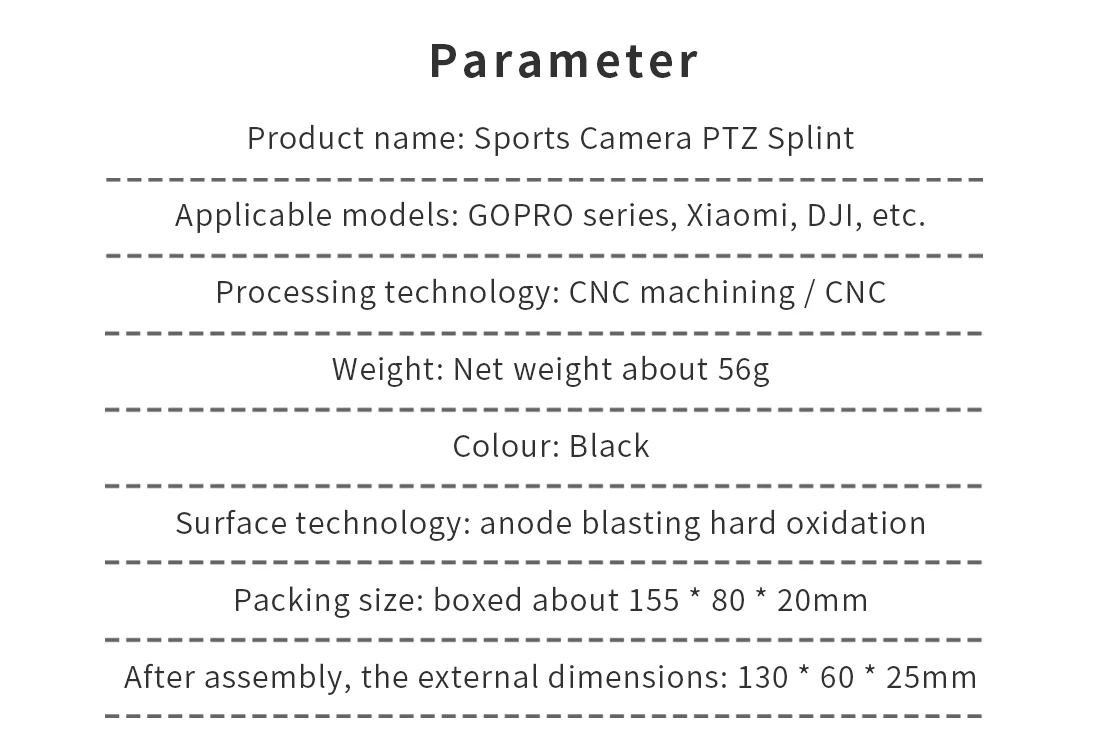 Примечание: вес пластины составляет 150 г, работа с балансовым противовесом и весом экшн-камеры будет почти более 300 г, следовательно, не применимы весы карманного стабилизатора gimbal мобильный телефон/Mini/Pocket!