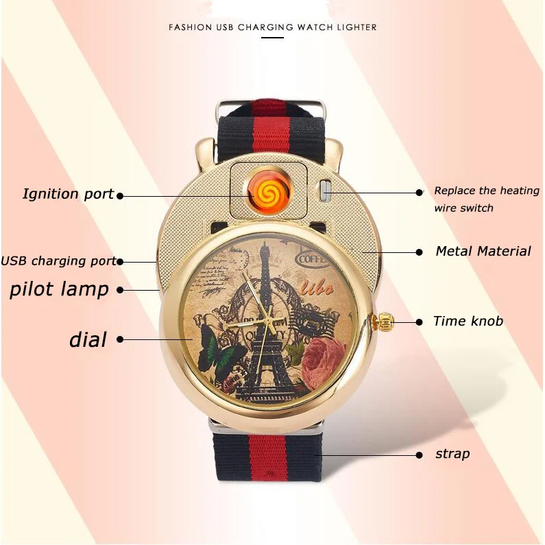 Женские часы, кварцевые часы, зажигалка, USB зарядка, ветрозащитные, креативные, экологические, женские часы, JH-366US $32,56 /