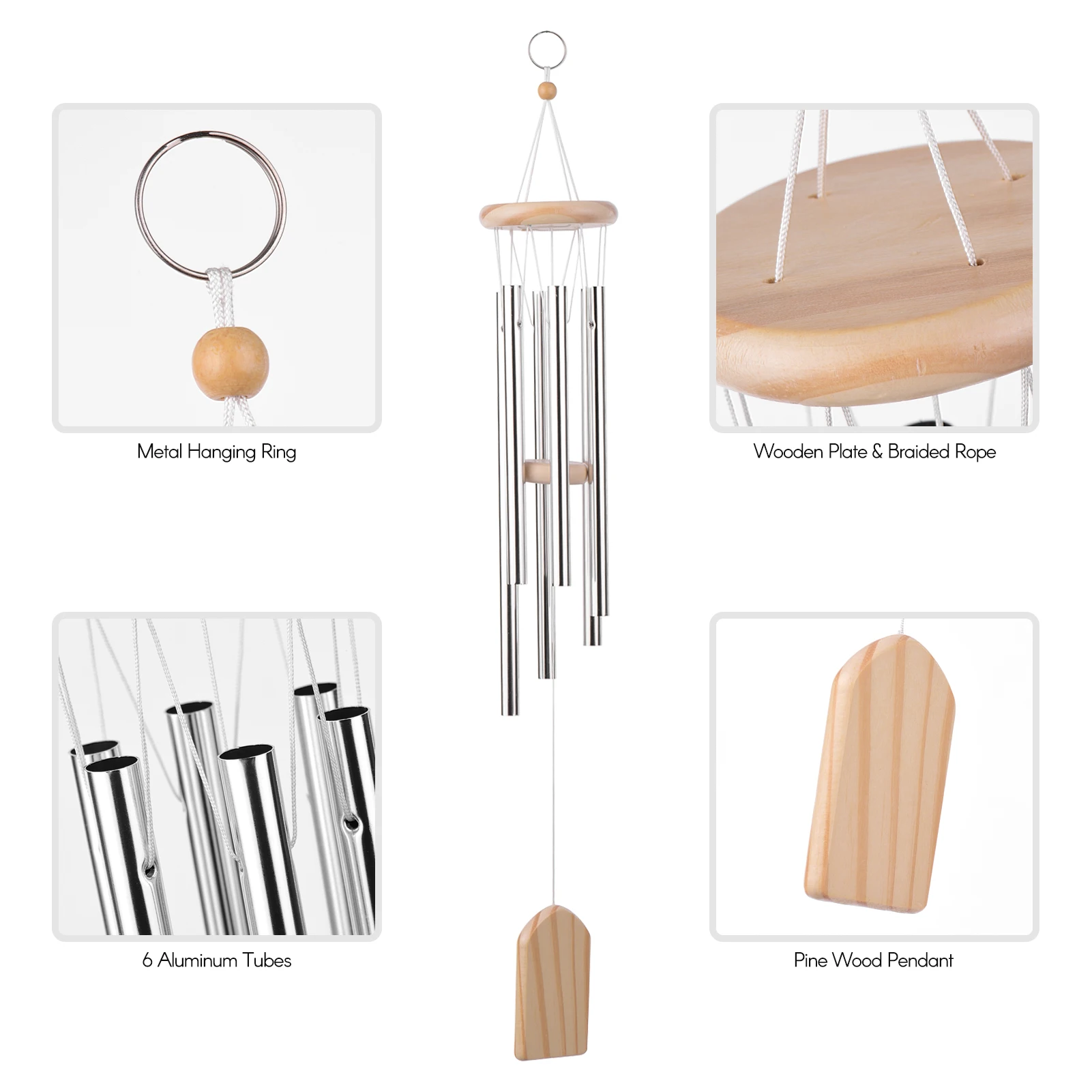 Деревянные Колокольчики с 6 трубами могут дать четкий и четкий звук, это прекрасное украшение для вашей комнаты и двора.