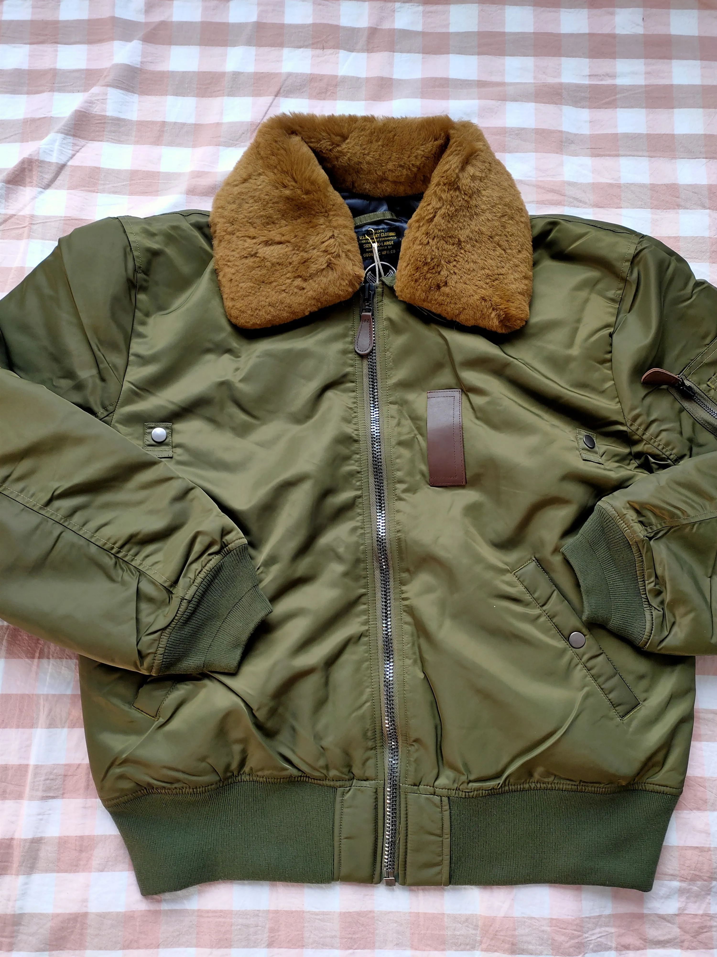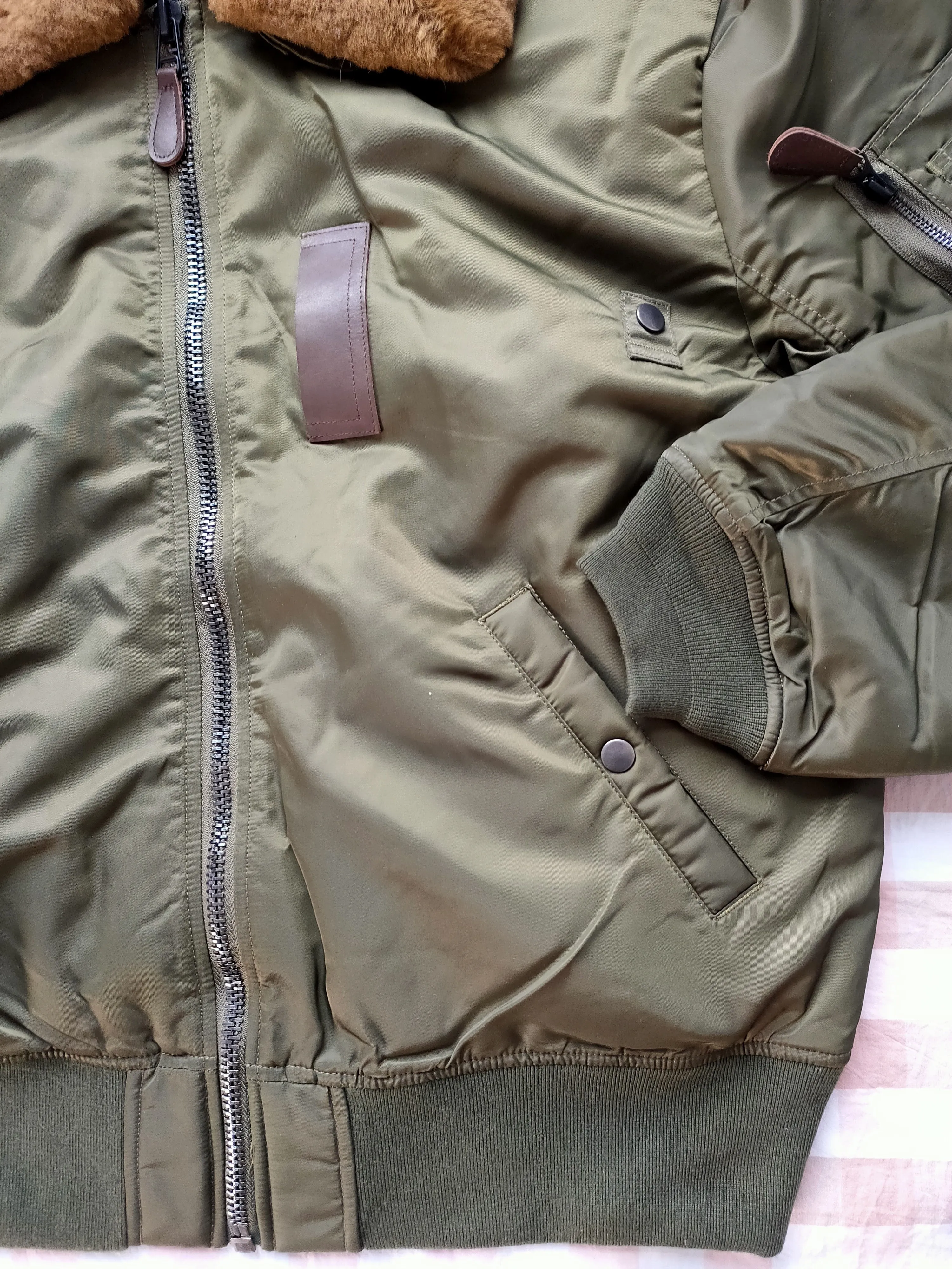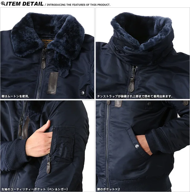 Последний зимний стиль года, B-15 хлопковая куртка, имеет очень высокие технологические требования и является чрезвычайно сложной. Это занимает больше времени, чем у других курток. Все платье покрыто молниями, нитями, меховым воротником и даже кожаной молнией. Воротник со съемным воротником, натуральная шерсть из чистой шерсти, поэтому будет немного запах шерсти, не имитирующая шерсть, при условии проверки всех видов. Внешний слой ткани очень Водонепроницаемая нейлоновая ткань. В дополнение к хлопковой подкладке, есть также двойной слой шерстяной прослойки, поэтому его будет так трудно носить, и нет никаких сомнений в сохранности тепла. Своего рода