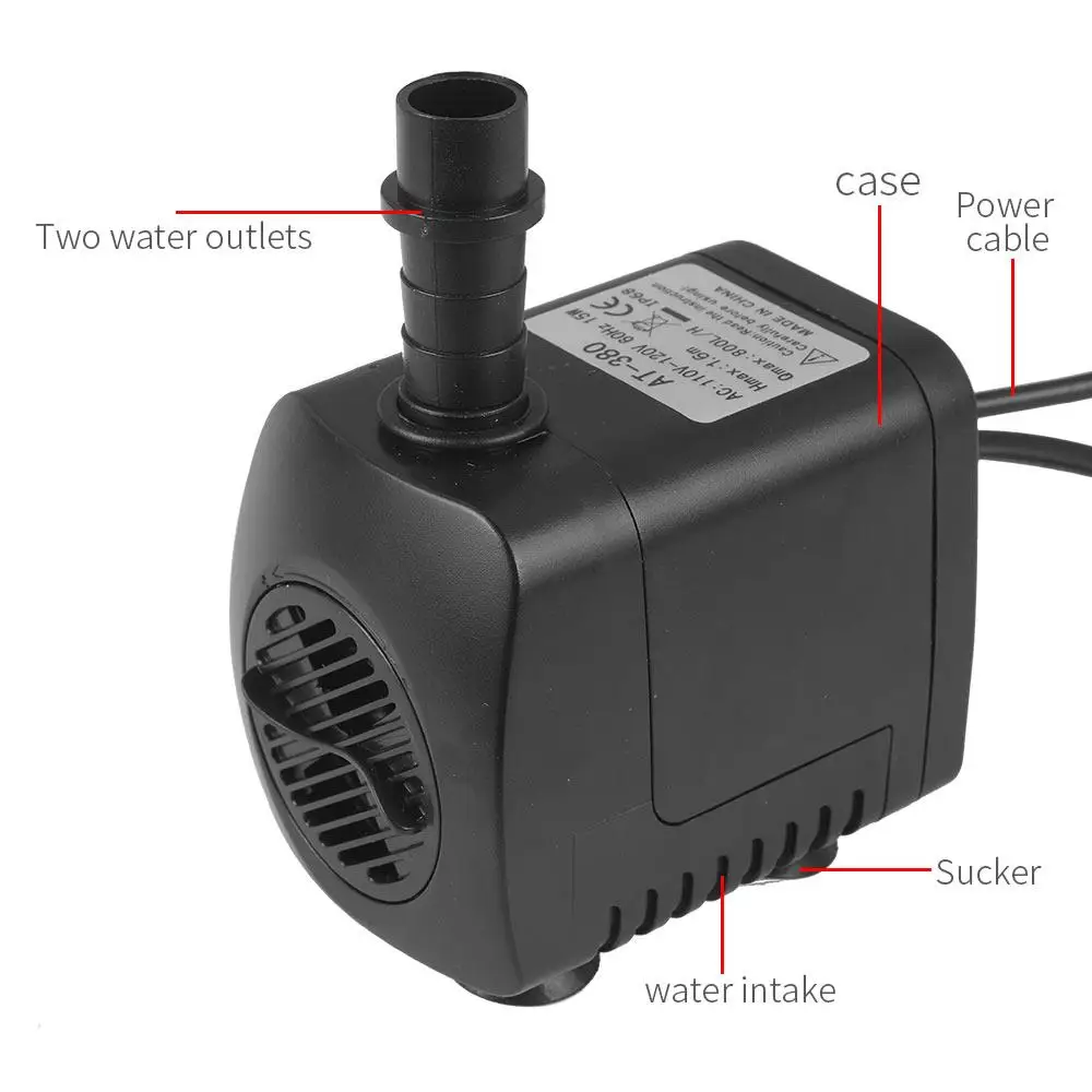 【Широкое применение 】-этот погружной насос притягивает ваших рыб или черепах, так как он сохраняет циркуляцию и аэрирование воды. Идеально подходит для аквариума малого и среднего размера, фонтанов, ландшафтного дизайна, носика, пруда, водных садов и гидропонных систем и т. Д.