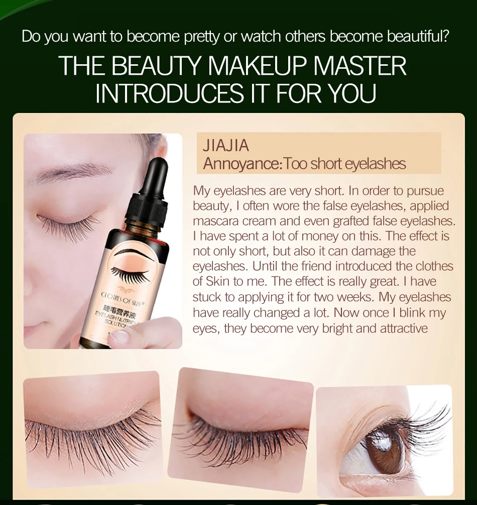 Вы хотите стать красивыми часами, чтобы другие стали красивыми? Мастер макияжа красоты представляет его для вас jiajia раздражение: tooshort ресницы мои ресницы очень короткие. Если вы ищете красоту, я часто беспокоюсь о накладных ресницах, нанесенных крем для туши и даже привитых накладных ресниц. Я потратил много денег на это. Эффект не только короткий, но и может повредить ресницы. До тех пор, пока fiend не введет одежду кожи мне. Эффект действительно Герат. Я приклеил его к применению в течение двух недель. Мои ресницы сильно изменились. Теперь, как только я мигну глаза, они стали очень яркими и привлекательными.