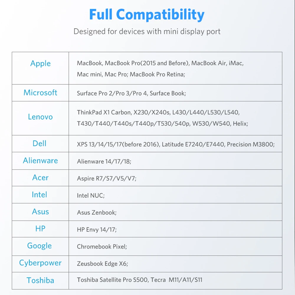 Кабель MDP (MAC mini, thunderbolt 2) к HDMI является незаменимым компаньоном для вашего Mac, ПК и планшета, оснащенного Mini DisplayPort. Непосредственно Подключите ноутбук или планшет к HDTV для видео высокой четкости 1080p (1920x1080) и потоковой передачи аудио или к HD монитору или проектору без отдельного кабеля. Низкопрофильный разъем с формованной конструкцией натяжения увеличивает долговечность кабеля.