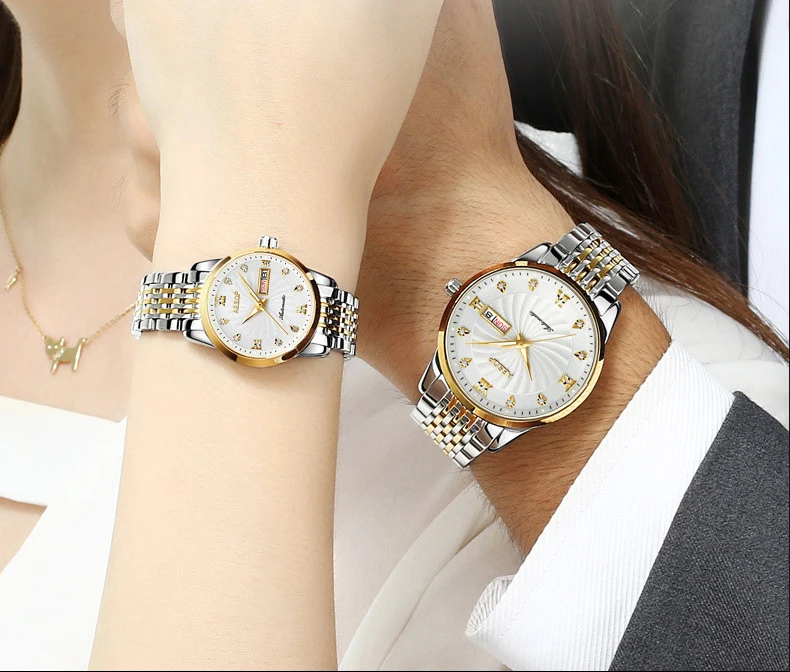 Примечание:Если вы покупаете одни часы, то есть один маленький серебряный и один маленький розовый золотой (Случайная Доставка) браслет для женщин, как показано ниже, для бесплатного подарка.