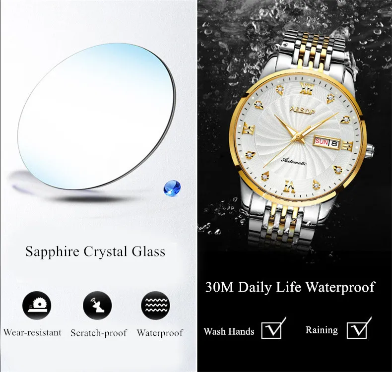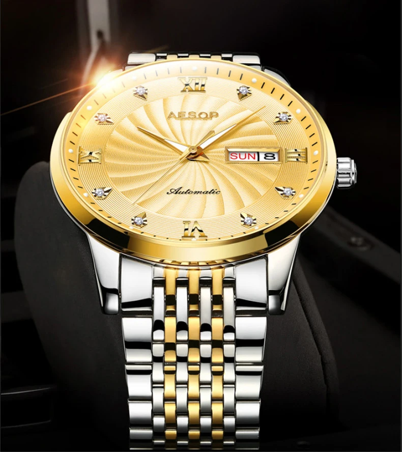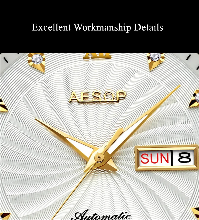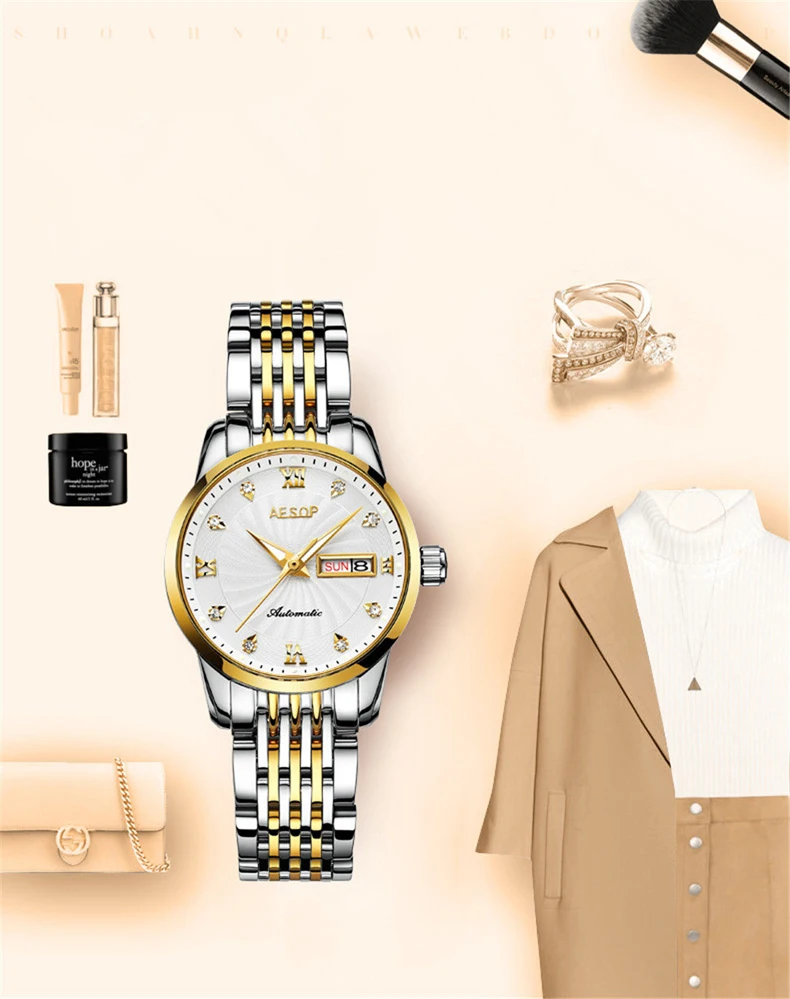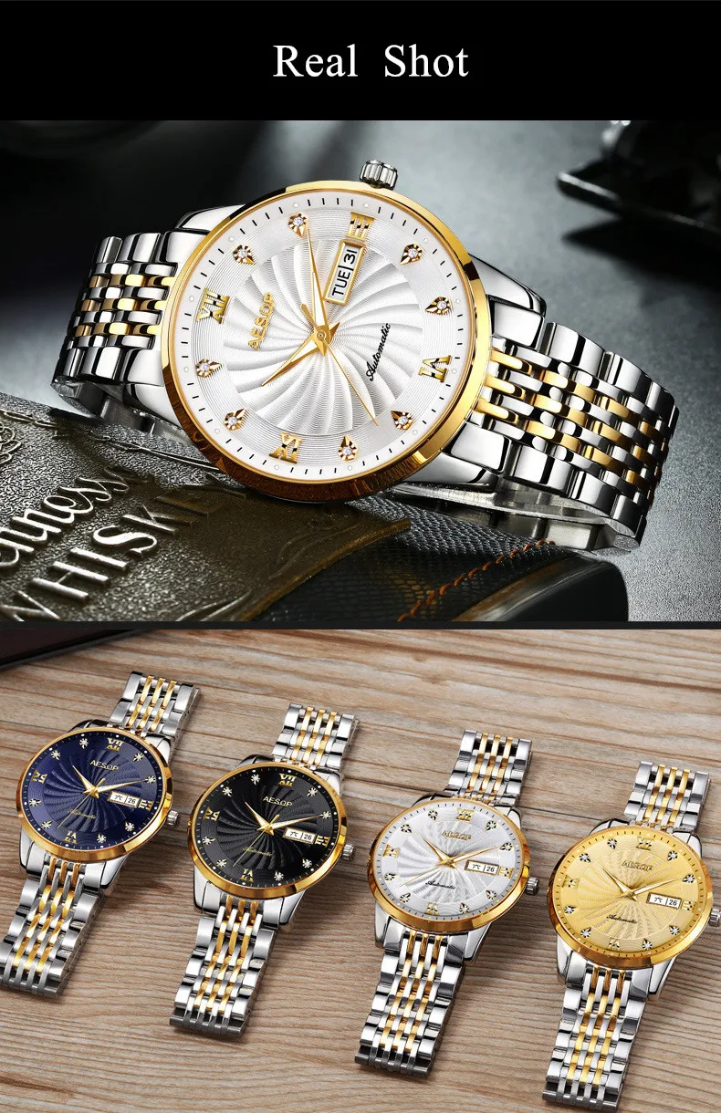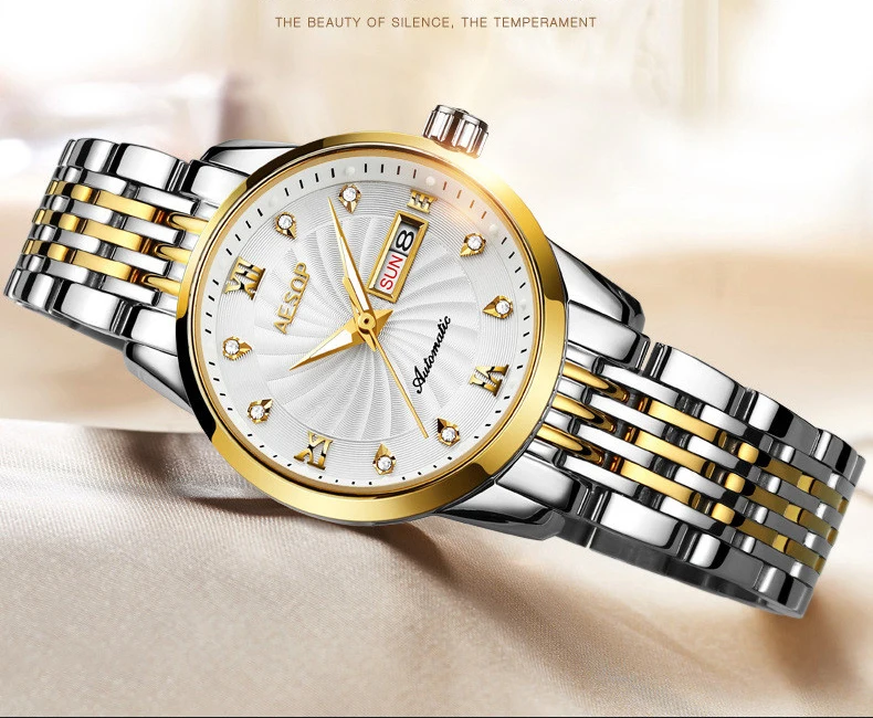 AESOP Брендовые женские модные золотые часы женские водонепроницаемые часы с календарем автоматические механические наручные часы сапфировые роскошные часы Relogio Feminino