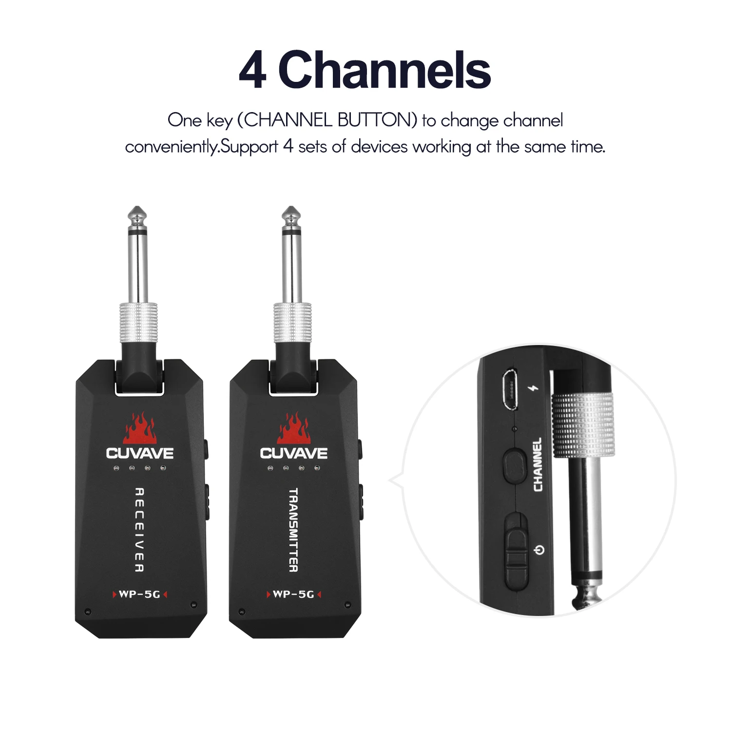WP-5G Беспроводная система передачи звука предназначена для беспроводного подключения электронных инструментов. Этот продукт отличается низким уровнем шума, низкой задержкой, высоким разрешением и длинной передачей. Просто наслаждайтесь беспроводной системой.