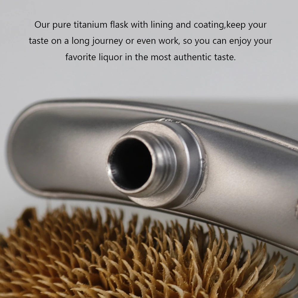 For the outdoor adventure warriors, how important it is to have a flask, put on your favorite tipple before you go to have a fine day. Our pure titanium flask with lining and coating,keep your taste on a long journey or even work, so you can enjoy your favorite liquor in the most authentic taste.
