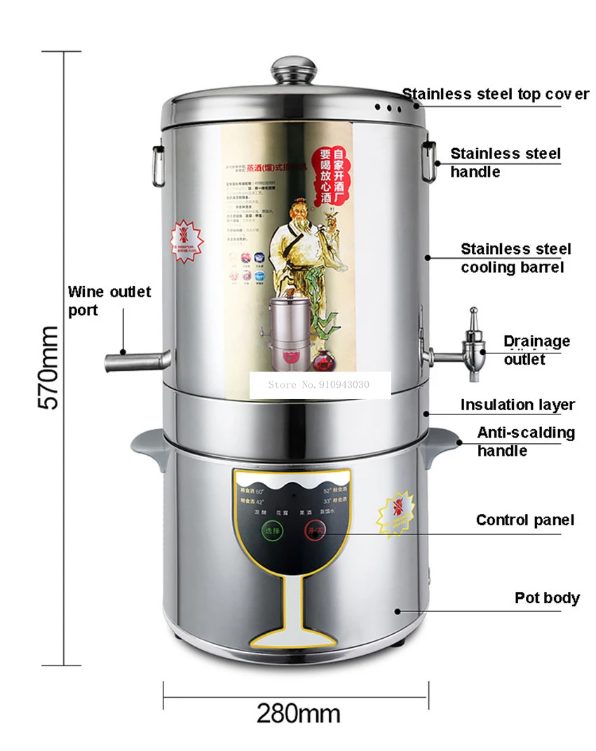 Наименование: машина для пивоварения вина Напряжение: 220 В мощность: 1500 Вт Материал: нержавеющая сталь Емкость: 5л Режим управления: управление микрокомпьютером Содержание алкоголя: 33 градуса, 42 градуса, 52 градуса, 60 градусов Функция: ферментация, рисовое вино, Фруктовое вино, Цветочная Роса, дистиллированная вода Размер: 280*280*570 мм Посылка включает в себя: Машина для пивоварения вина x1, Электронные весы x1, Паровая корзина x1, Spillproof board x1, Мерная чашка x1, Измерительный цилиндр x1, Фильтр-мешок x1Демонстрация товара: