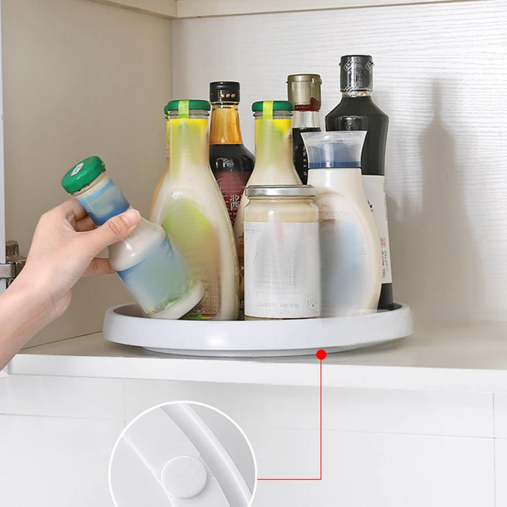 Stable stacking, free combination, simple design, can store cosmetics, kitchen supplies, etc. Cosmetics Organizer, Multilayer Design, Rotating You can use this in your kitchen, pantry, refrigerator, or even bathroom cabinets. Rotary storage, effectively save space, large capacity, safe and convenient.