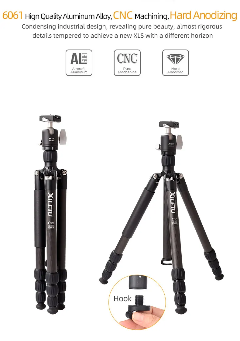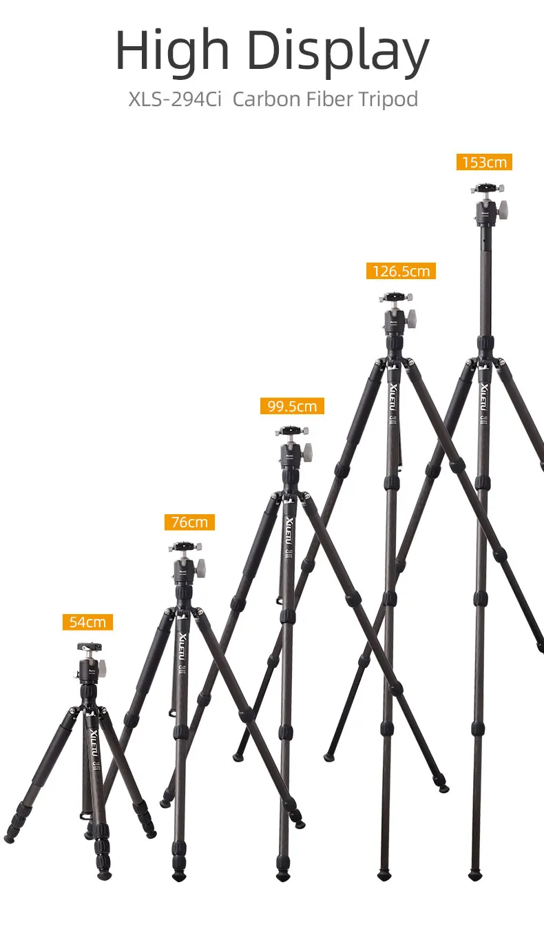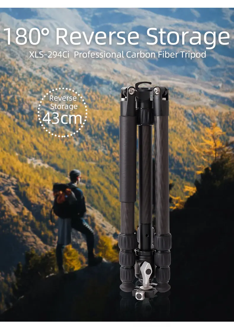 XILETU XLS-294Ci Профессиональный штатив из углеродного волокна с двойной панорамной шаровой головкой 360 ° компактный дорожный Штатив для Canon,Sony, Nikon, Samsung, Panasonic, Olympus, Kodak, Fuji, камер и видеокамер