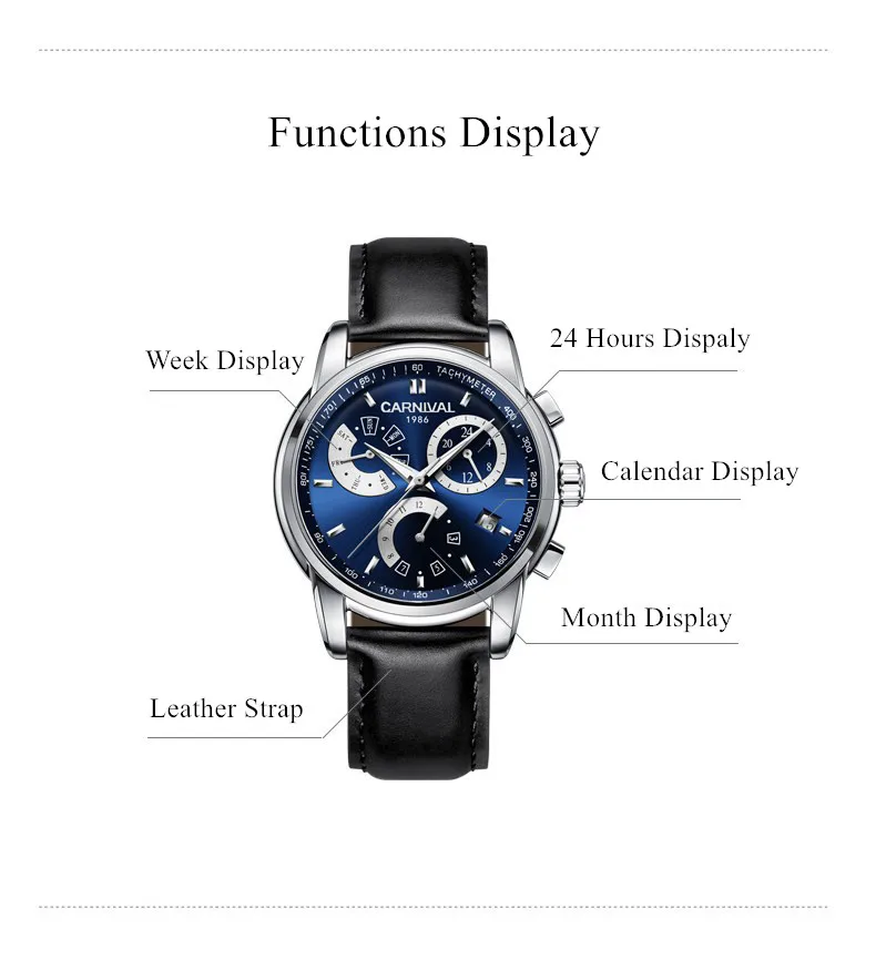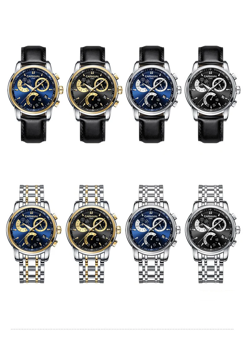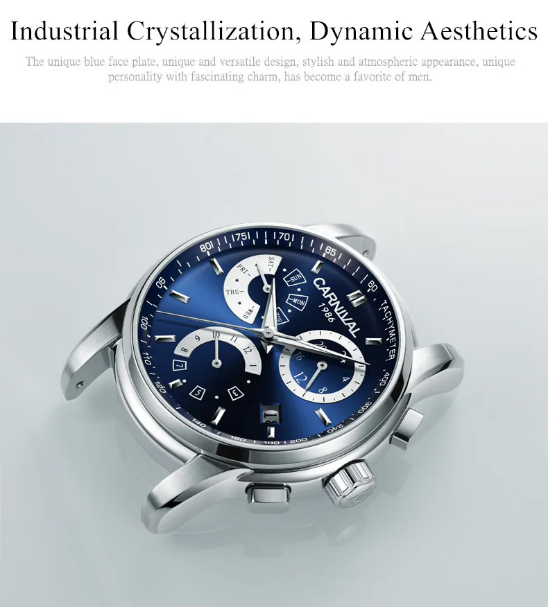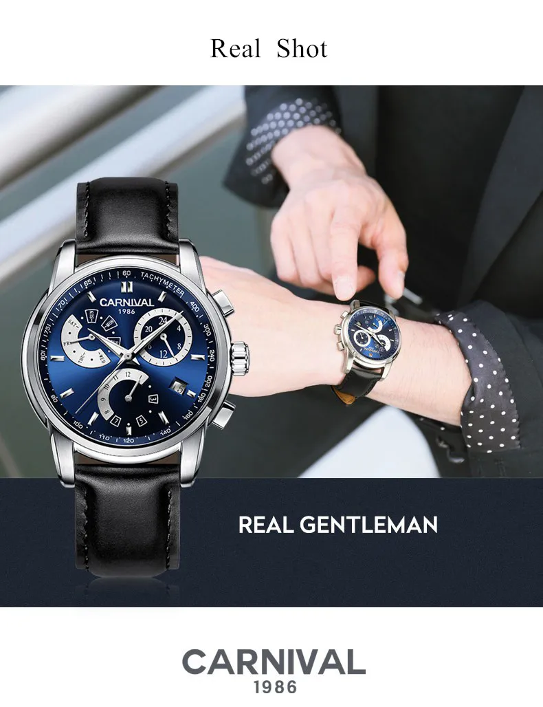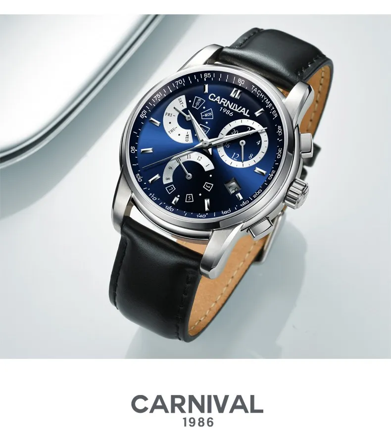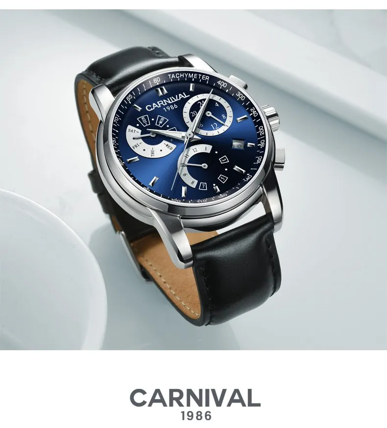 Карнавальный бренд, модные часы, мужские Роскошные водонепроницаемые часы с датой недели, автоматические военные механические наручные часы, Relogio Masculino