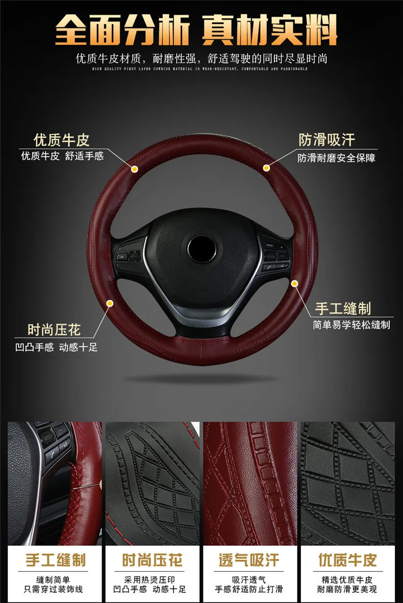 Адаптированный Диаметр руля: 38 см Материал: Высококачественная кожа Инструкции по стирке: просто очистите пеной или влажной тканью Цвет: коричневый/винно-красный/черный красный Особенности: Высококачественная кожа Защита от пота Модное тиснение Ручная работа Универсальный дизайн. Один размер подходит для большинства транспортных средств; От седанов до внедорожников и квадроциклов до пикапов. Добавьте некоторую индивидуальность к вашему автомобилю или грузовику. Каждому автомобилю нужен отличный аксессуар, и это он.