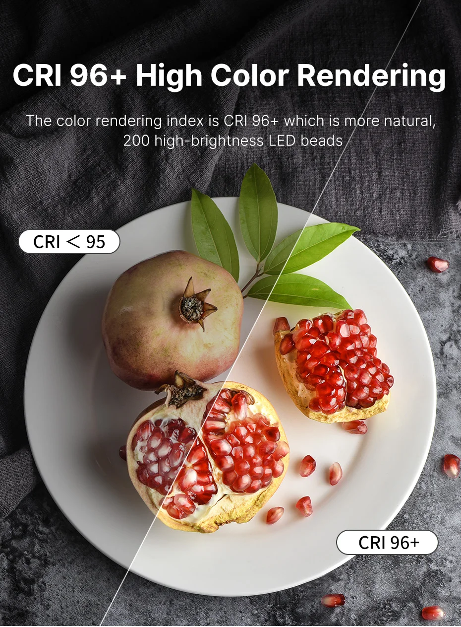 【 CRI96 + высокий индекс цветопередачи, восстановление истинного colors】-индекс цветопередачи камеры rig светильник CRI 96 + которая дарит ощущение еще большей натуральности, 20 Вт, 200 высокой яркости светодиодный бусины.