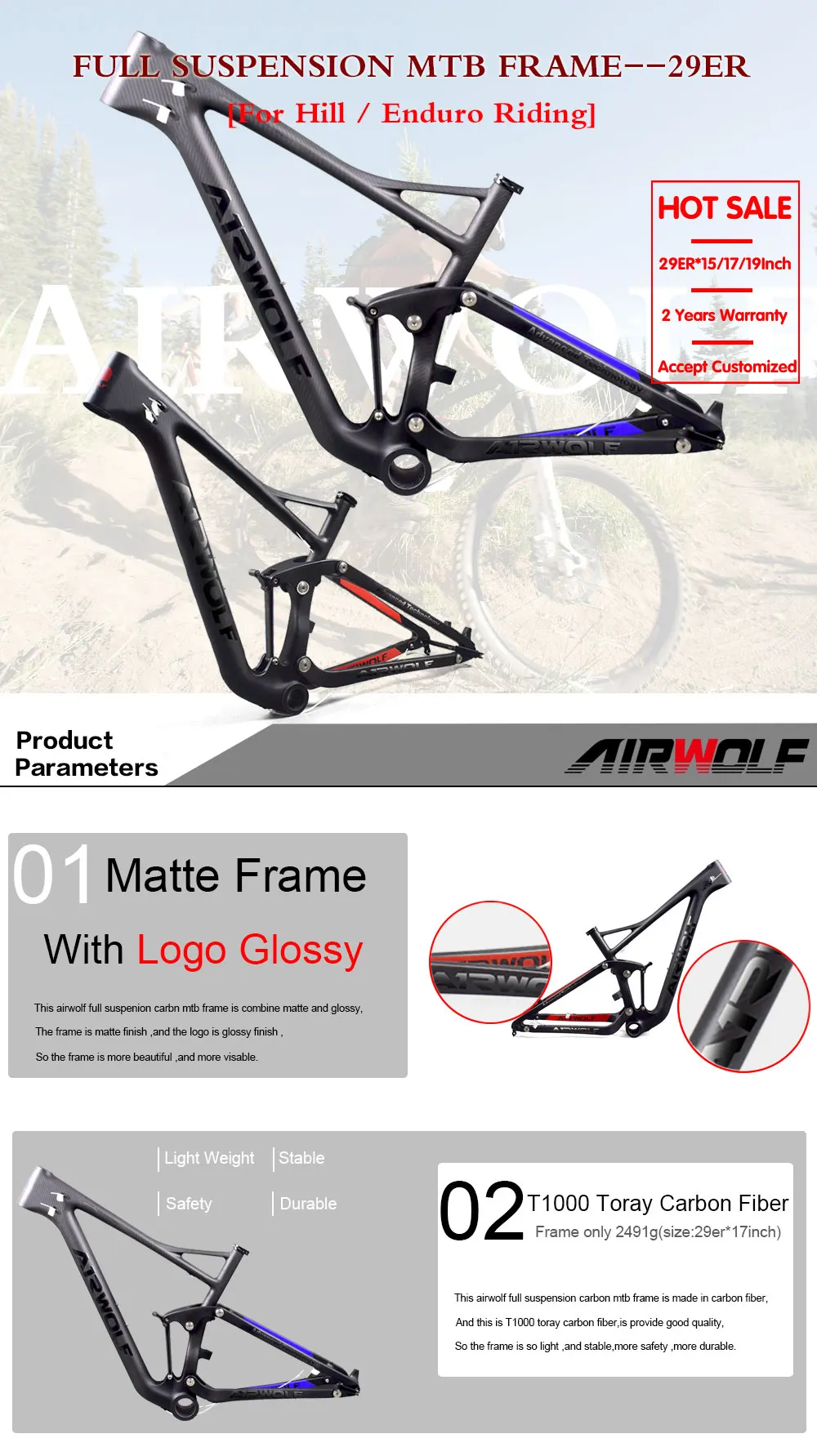 AIRWOLF Enduro углеродная Mtb рама 29er полностью подвесной горный велосипед рама дисковый тормоз гоночная углеродная подвеска велосипедная Рама