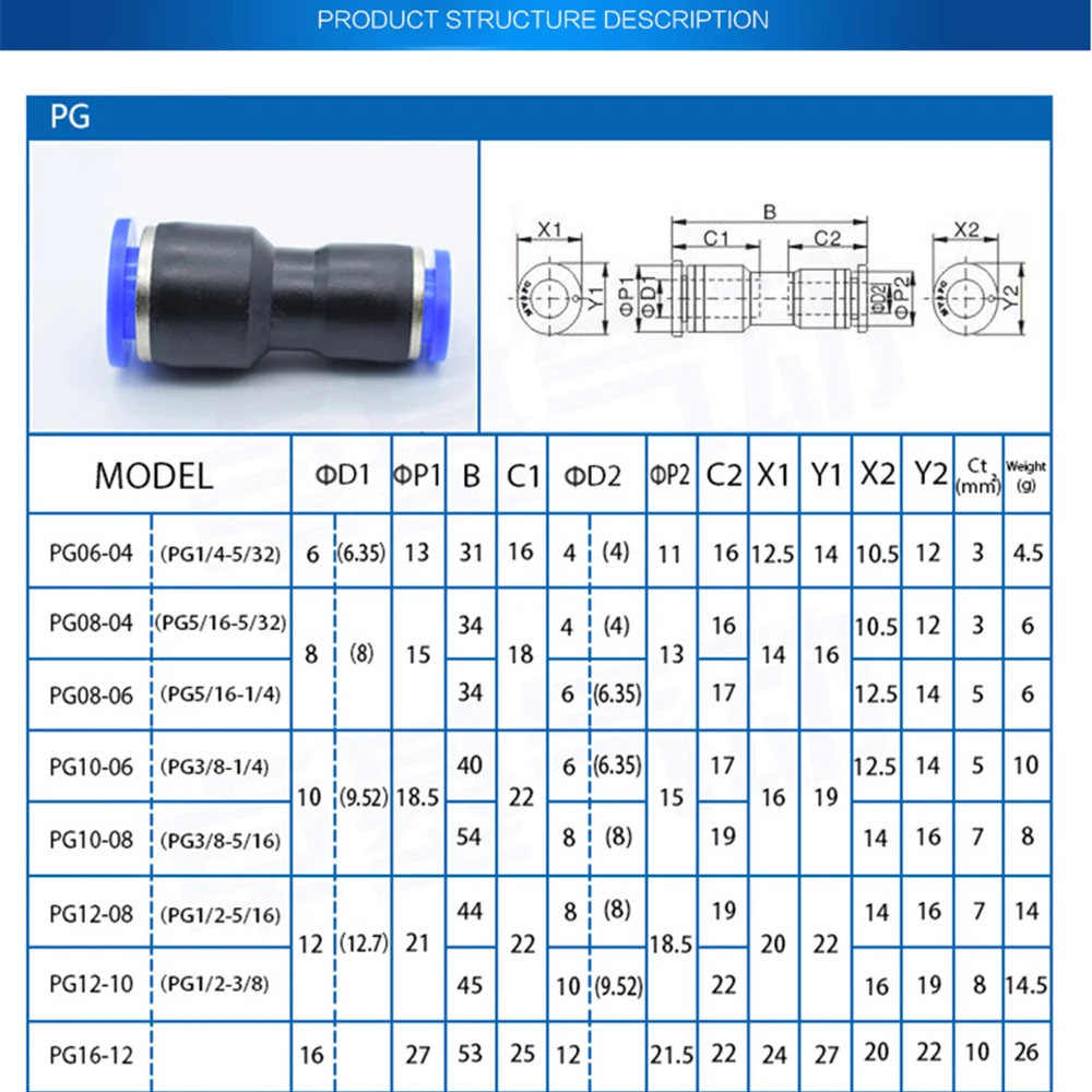 Информация о продукте Название продукта: PU PG пневматический соединитель Рабочее давление: 0 ~ 10.2kgf/cm2 (0 ~ 1.0Mpa) Отрицательное давление: -750 мм рт. Ст. (10 Torr) Диапазон рабочих температур: 0 ~ 60C Подходит для труб: ПУ/нейлон, полиуретан Материал быстроразъемного разъема: пластиковая латунь Зажим: нержавеющая сталь Применимый шланг: нейлон/ПУ трубка Наружный диаметр трубы: 4 мм/6 мм/8 мм/10 мм/12 мм/14 мм В том числе Упаковка: 1 разъем (тип, который вы выбираете)