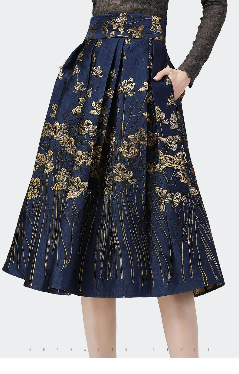 Модная женская плиссированная Жаккардовая юбка с цветочной вышивкой и высокой талией