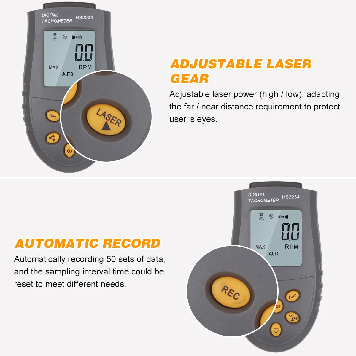 [Бесконтактное измерение] на основе встроенного MCU, оптоэлектронной технологии и полупроводниковой лазерной технологии, этот Тахометр реализует точные бесконтактные измерения.
