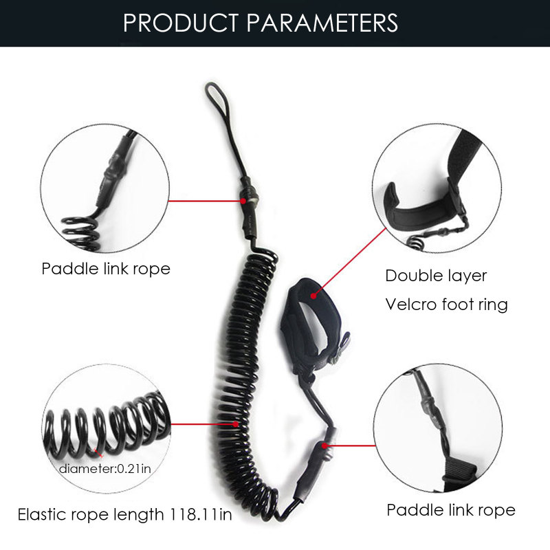 1. Прочный и безопасный: Этот ремень изготовлен из ТПУ и неопреновой веревки. Достаточно прочный, чтобы обрабатывать самые длинные и тяжелые доски, но так как он предназначен для гребли плоской воды, он легкий и гибкий. Новые Литые двойные Вертлюги Из Нержавеющей Стали, плюс Тройная оберточная рейка.
