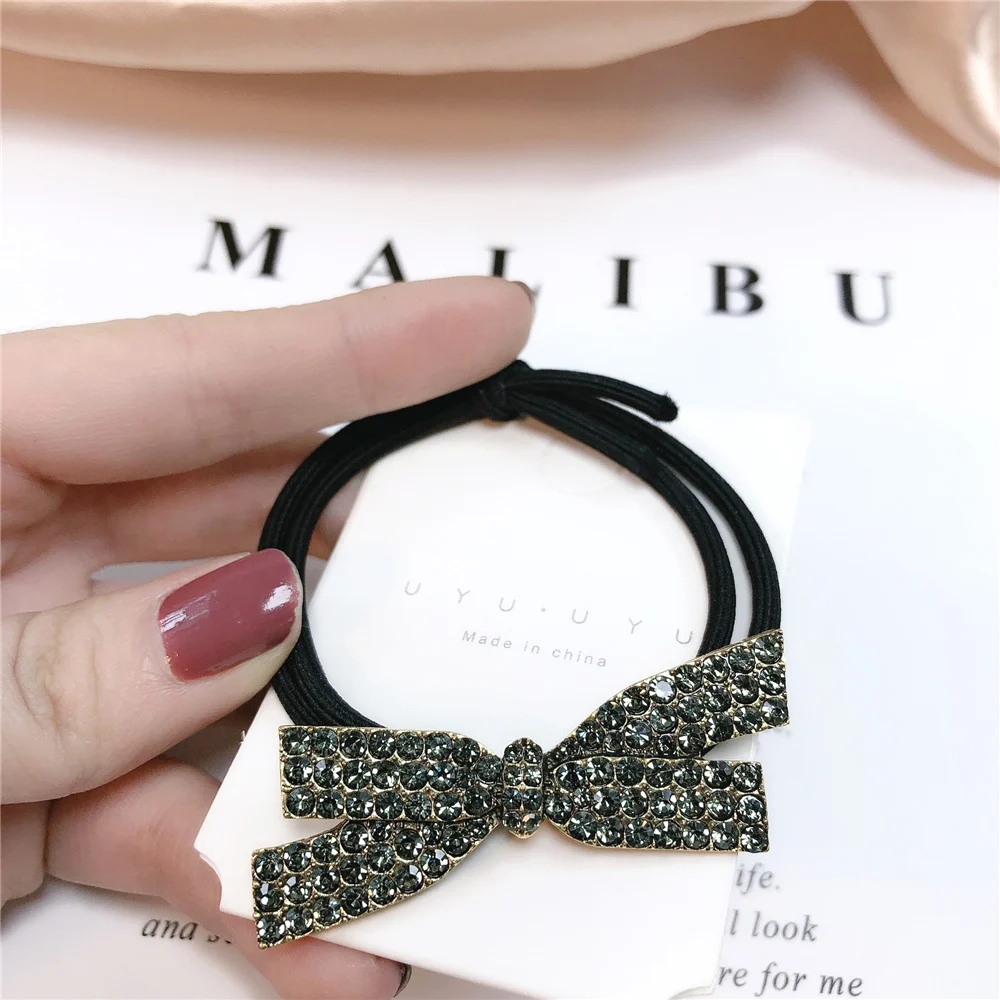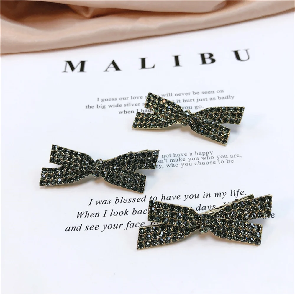 Женские заколки для волос с кристаллами и бантиком, блестящие стразы, Элегантные Заколки для волос, аксессуары для волос, новинка Количество: 1 шт./компл. Посылка: бумажная карта с полипропиленовым пакетом