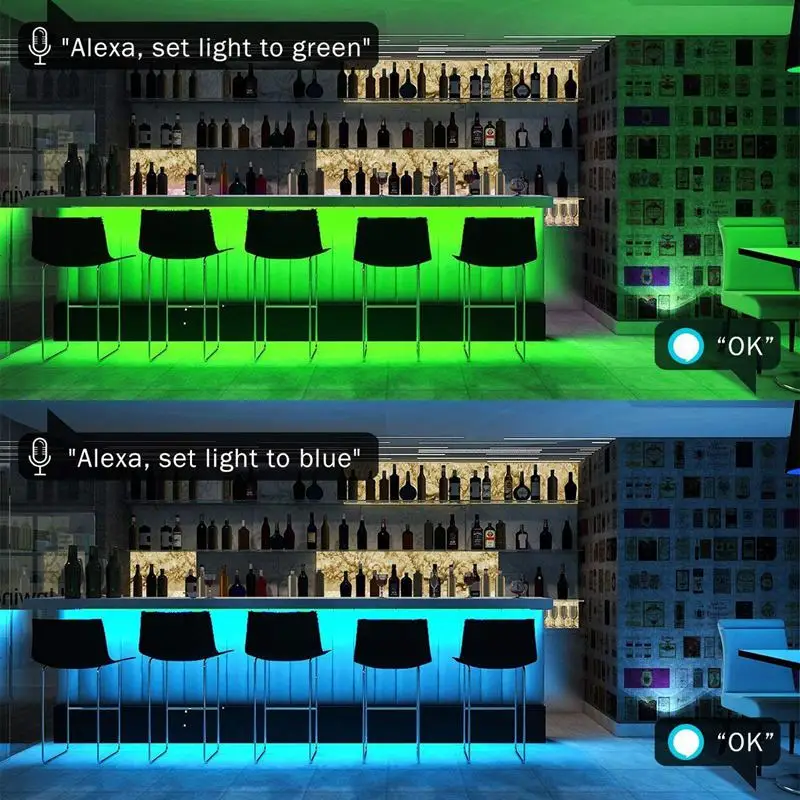 Голосовое управление светодиодный светильник RGB светодиодные ленты на разговаривать с Amazon Alexa, выступать в соответствии с вашими требованиями, Управляйте своим светильник полосы с помощью голосовых команд, вы можете включить/выключить, вы можете поменять цвет, тусклый/Осветляющий светильник.