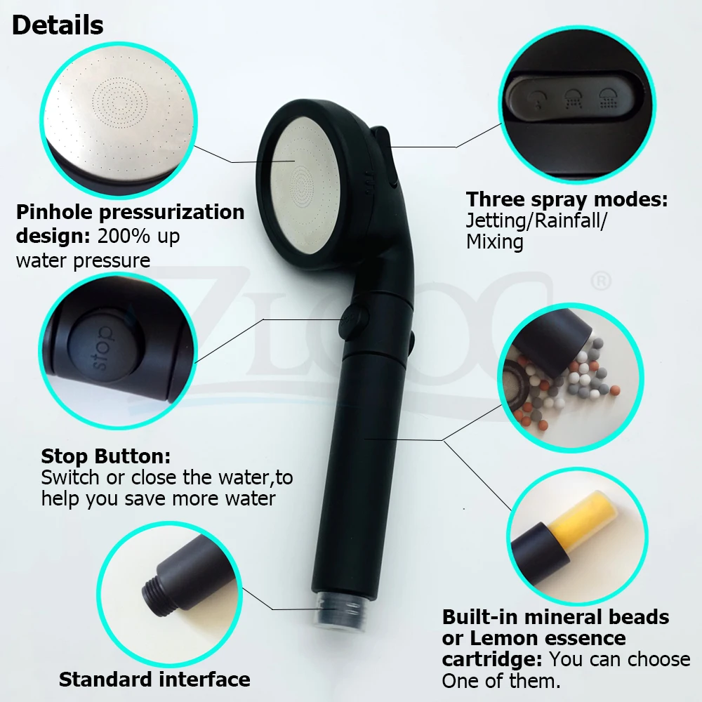 Zloog матовый черный 3 режима минеральные шарики Витамин С насадка для душа