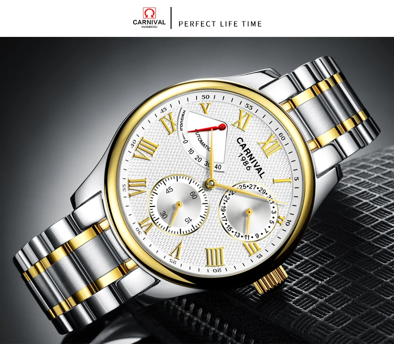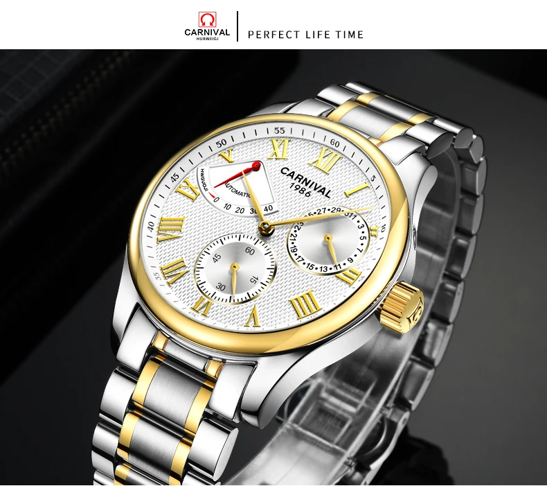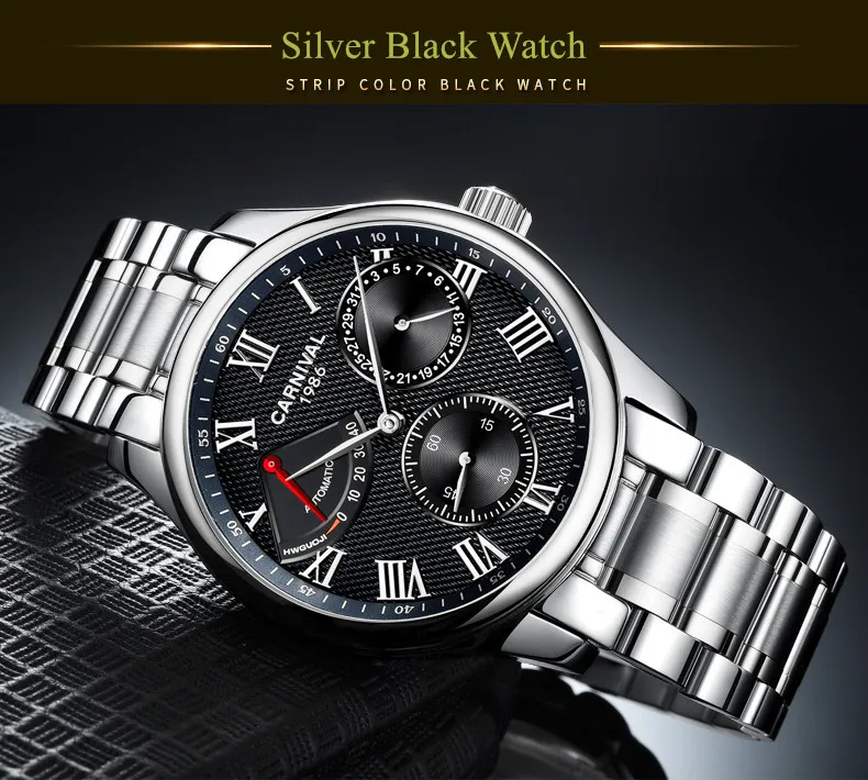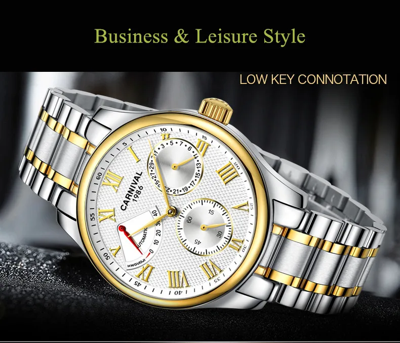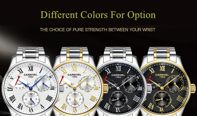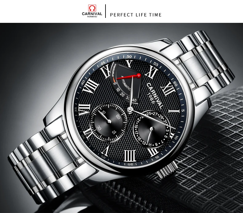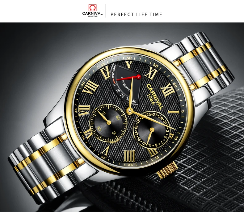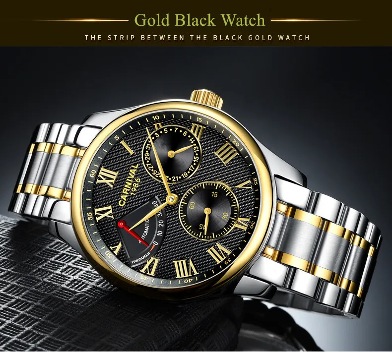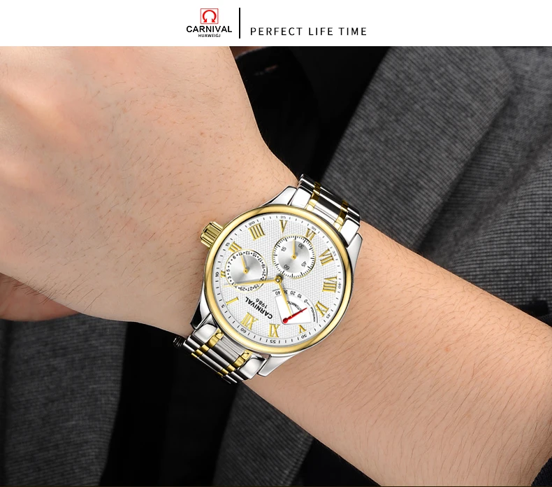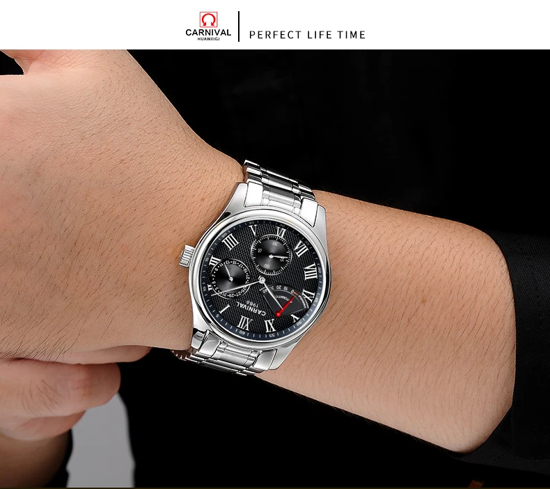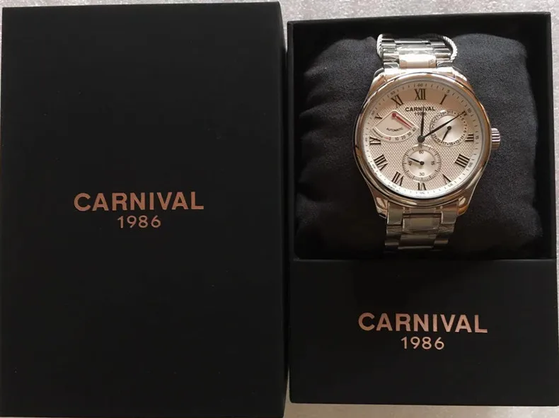 Карнавал Топ бренд автоматические Модные Бизнес часы мужские Роскошные водонепроницаемые энергетические дисплей Механические наручные часы Relogio Masculino