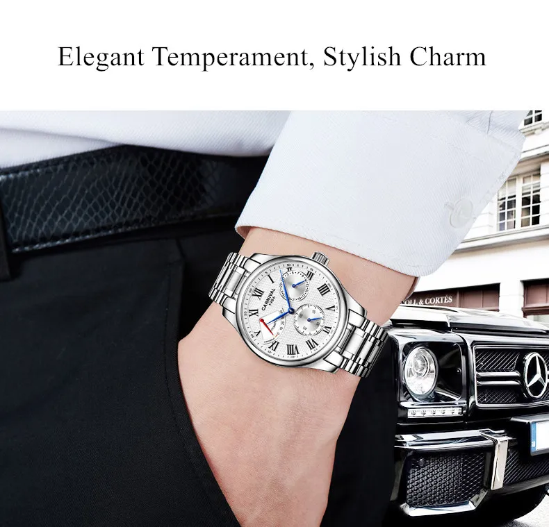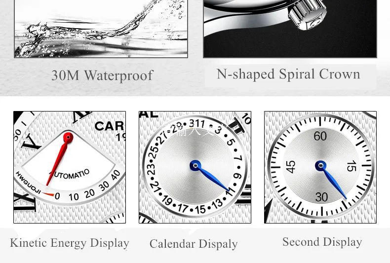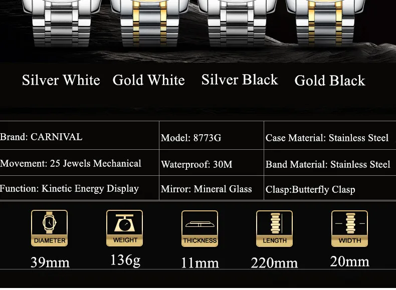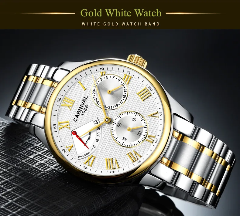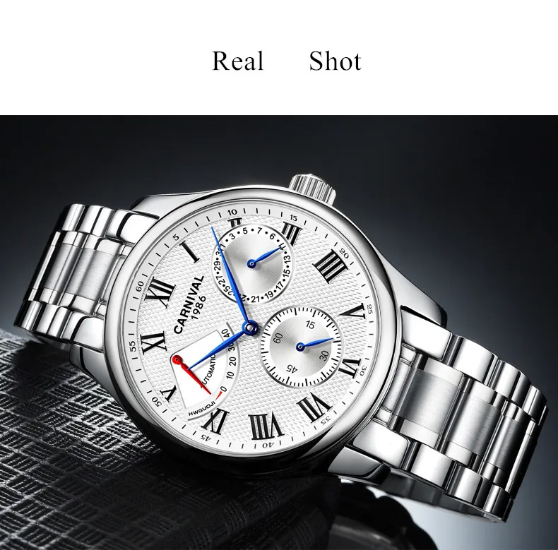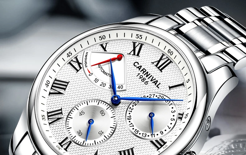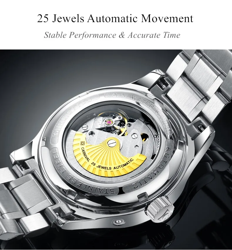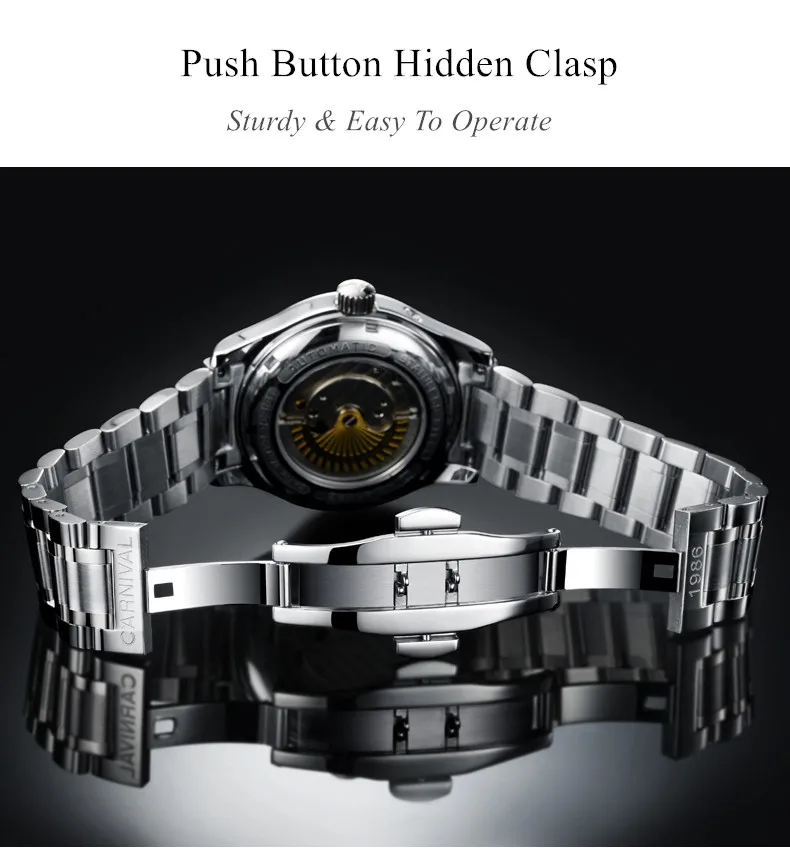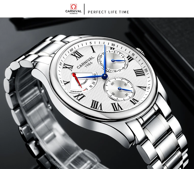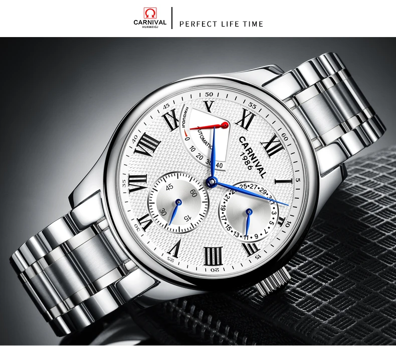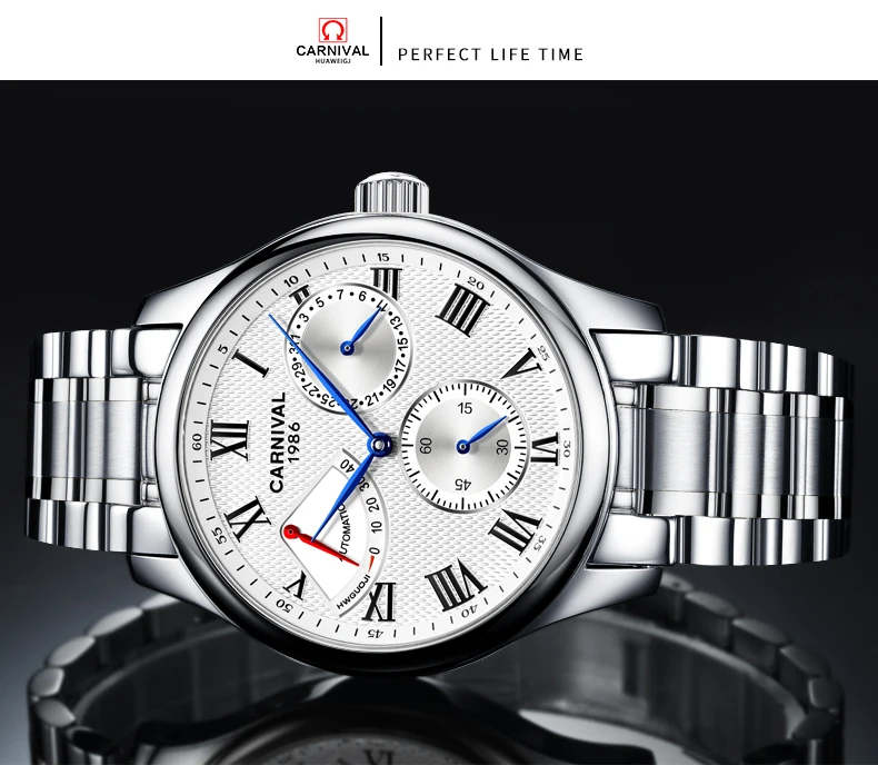 Карнавал Топ бренд автоматические Модные Бизнес часы мужские Роскошные водонепроницаемые энергетические дисплей Механические наручные часы Relogio Masculino