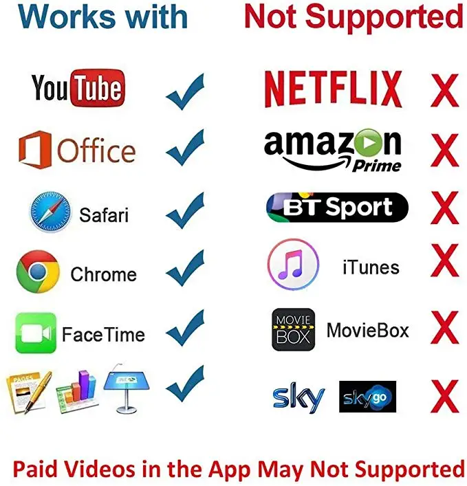 1. Чтобы вы могли передавать видео/аудио/музыку или зеркальное изображение с вашего устройства на телевизор через порт, совместимый с HDMI. Лучшее использование для развлекательного обмена, игр, презентаций или для работы (ВАЖНО): ваше устройство должно быть подключено к сети, подключено Wi-Fi, Подключение данных и личная точка доступа включены, так что зеркальное отображение может происходить через Air Play. Данные не потребляются. Поэтому устройство без sim-карты или сети не будет работать. 2. ОС и ОС-версия/версия: для Linux 3.CPU-версия/Процессор: AM8255 4. Скорость процессора (МГц):600 МГц 5. ОЗУ (МБ):DDR3 128 Мбит/с 6. Внутренняя вспышка (МБ): 128MBytemax. 7. Разрешение:(1920 * 1080_30P) 8.USB:USB2.0 9. Мощность: DC 5V1A 10.Wifi модуль/версия: N/A 11.Wifi frequncy (2,4G/5,8G):N/A 12.RF / Antenne:N/A 13. Видео-форматы: avi, . Divx,. МкВ,. Ts,. Dat,. Vob,. Mpg,. Mpeg,. Mov, .mp4, . Rm,. Rmvb,. Wmv 14. Изображения-форматы: JPEG, BMP 15. Аудио-форматы: MP1/MP2,/MP3, WMA, OGG, ADPCM-WAV, PCM-WAV, AAC 16. Форматы файлов: dobe PDF, MS Word, Ms Excel, Ms Powerpoint, I работает;