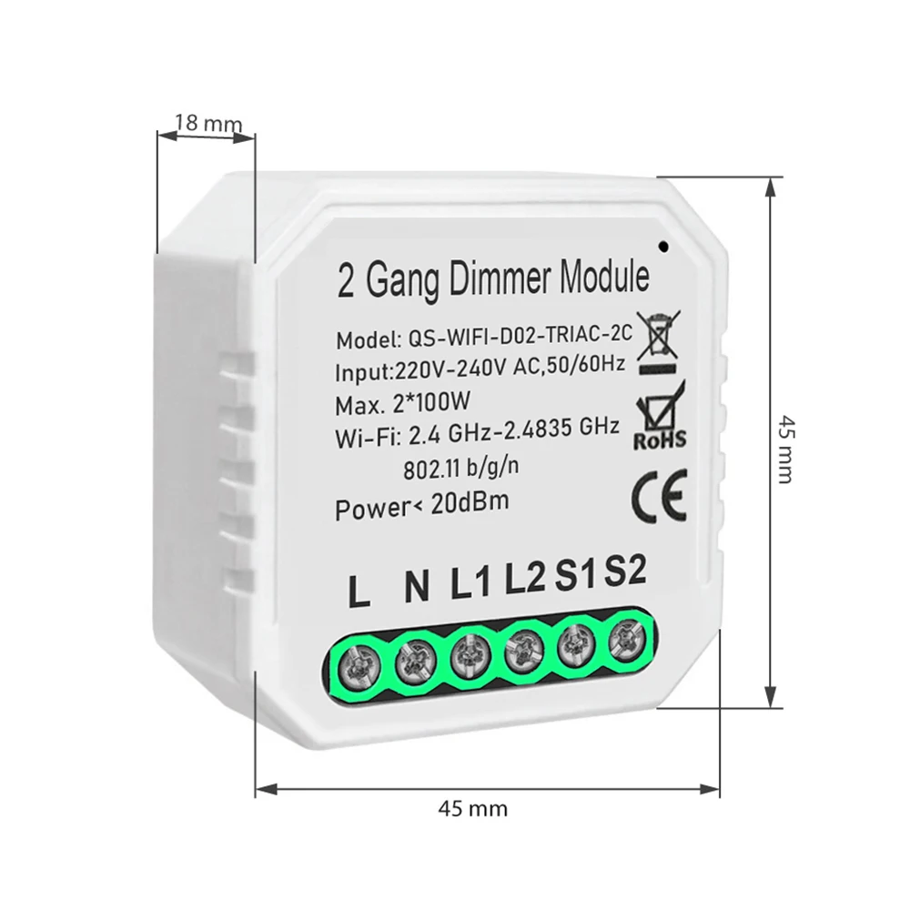 Модуль диммера Wi-Fi предназначен для преобразования традиционного переключателя в умный переключатель Wi-Fi, который позволяет подключенному устройству управлять через смартфон, а также традиционный переключатель. Мини-дизайн: интеллектуальный модуль переключателя подходит для электронного продукта мощностью менее 150 Вт (потолочный светильник, лампа, настольная лампа, садовый светильник. И т. Д.) Основные функции: дистанционное управление смартфоном, переключатель времени, голосовое управление...