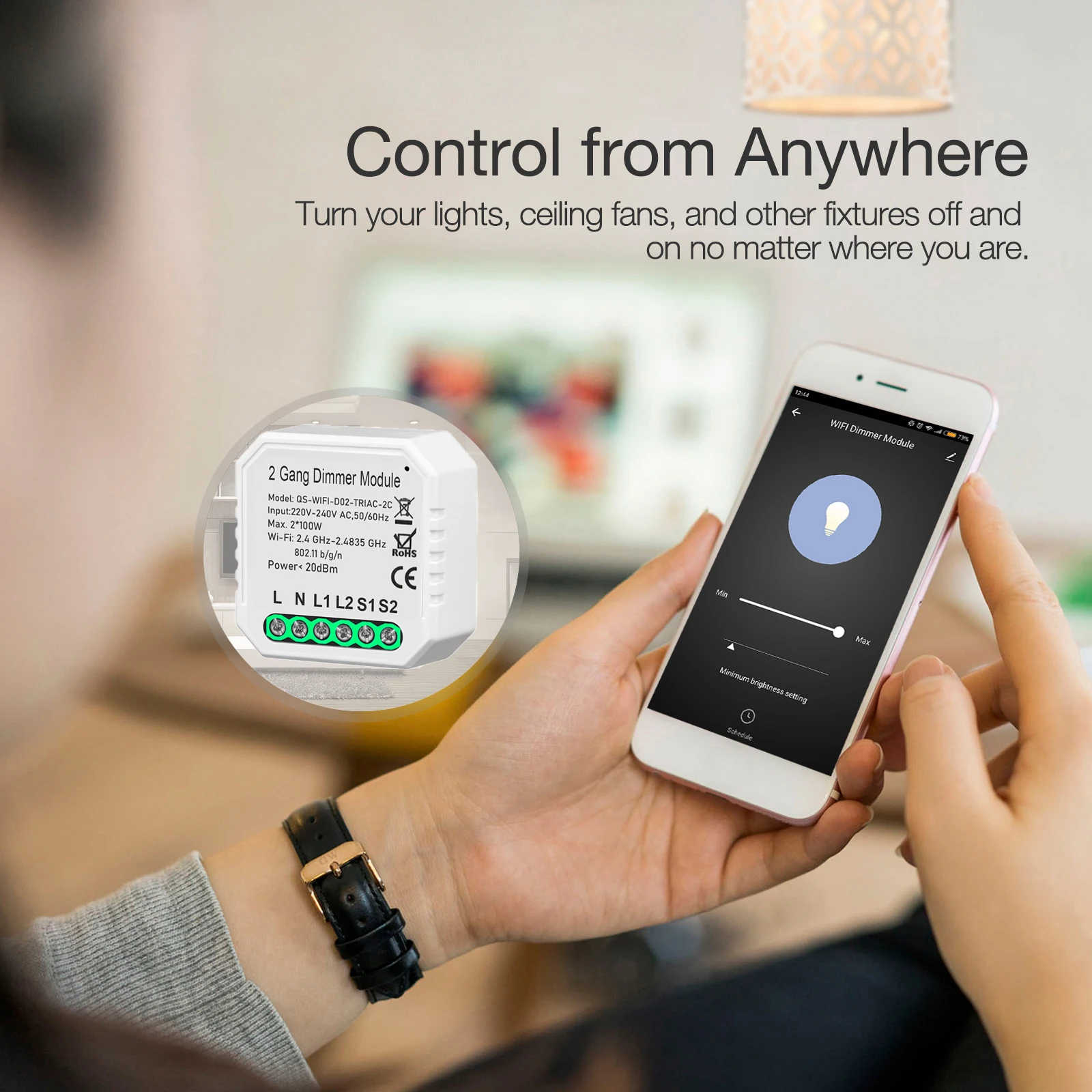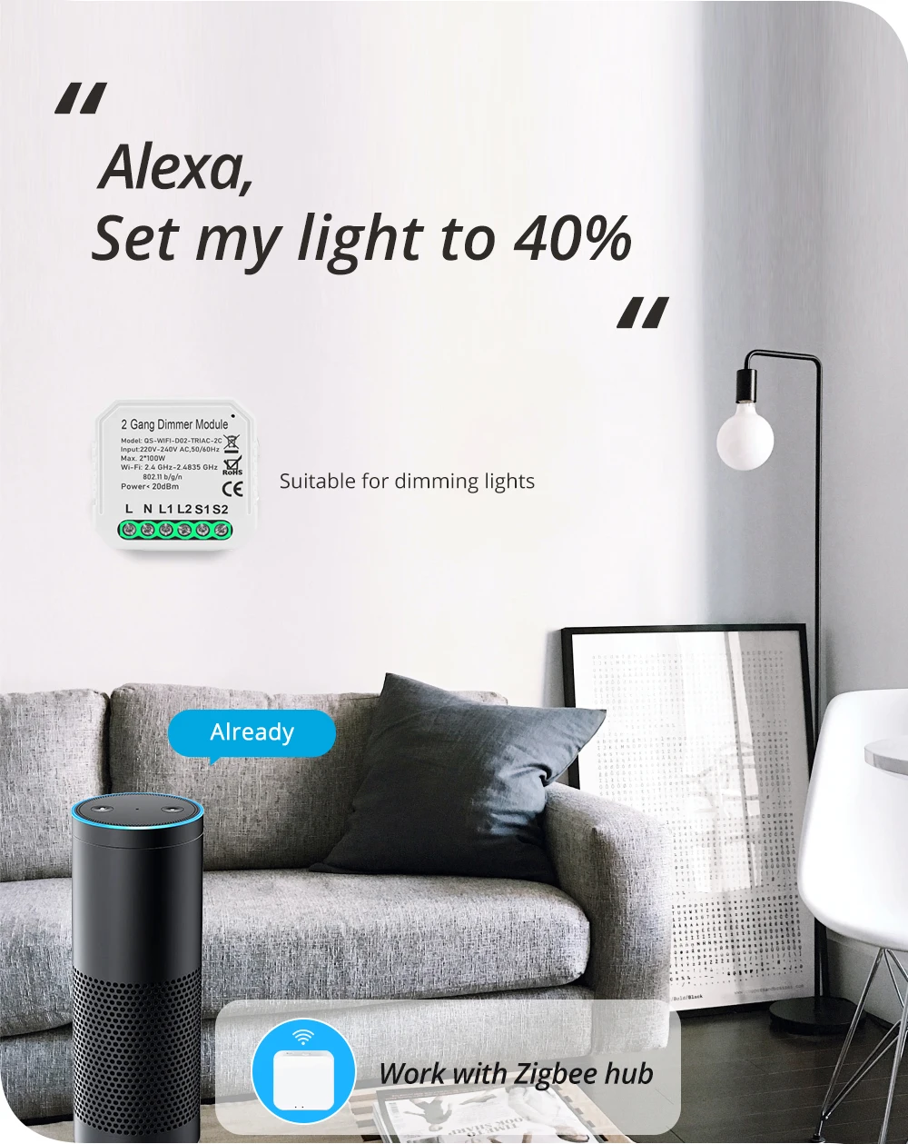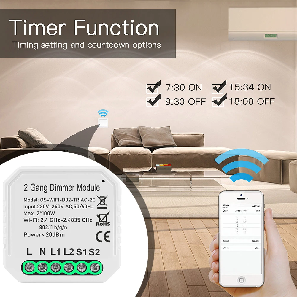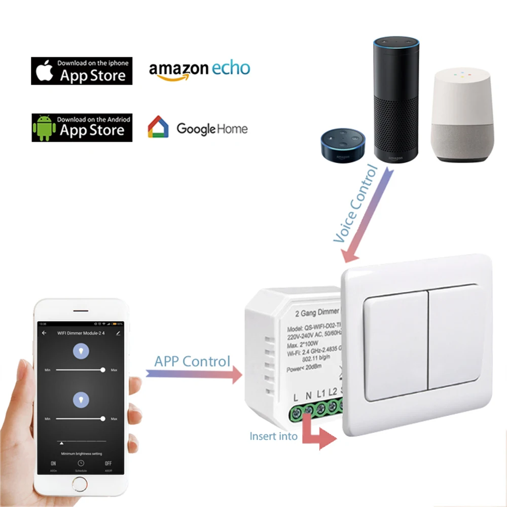 Модуль диммера Smart светильник поддерживает функцию таймера, и выключатель питания может управляться дистанционно (wifi)! Голосовое управление/Управление смартфоном, удобное и простое в эксплуатации. -Перед тем как отправиться домой, вы можете открыть кондиционер в гостиной, открыть теплый светильник в спальне, готовый принять ванну с горячей водой, чтобы устранить усталость дня. -Если вы хотите пойти в ванную или пойти в другие комнаты после того, как Вы выключите свет, вы можете использовать приложение «smart life», чтобы открыть свет заранее, никогда не будет никаких опасений или несчастных случаев, это особенно важно для пожилых людей, детей и людей с ограниченными возможностями. -Включите светильник или кофеварка, прежде чем выйти из кровати, Сделайте вашу жизнь более легкой.