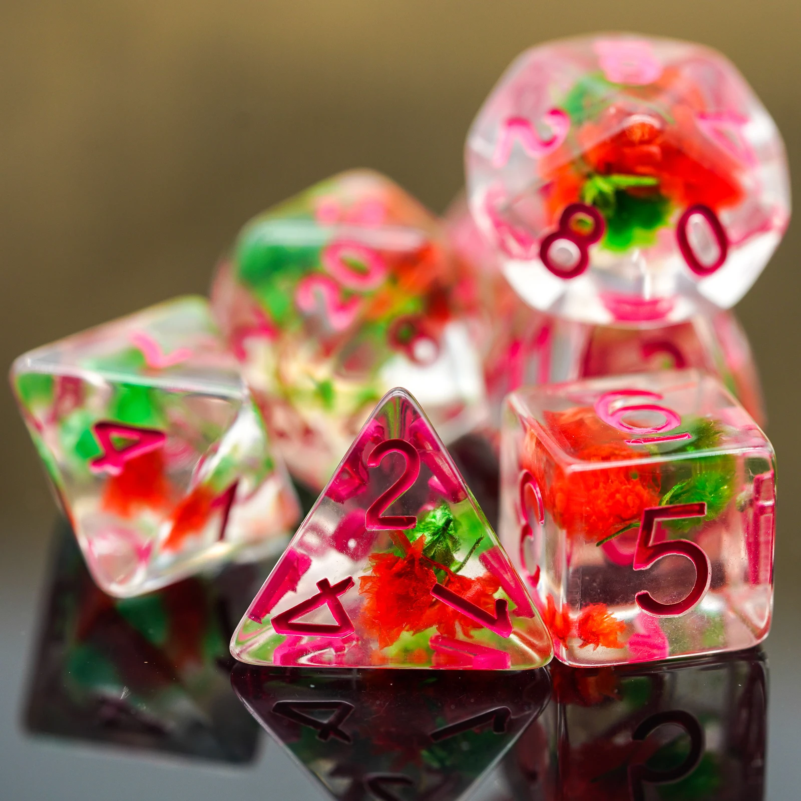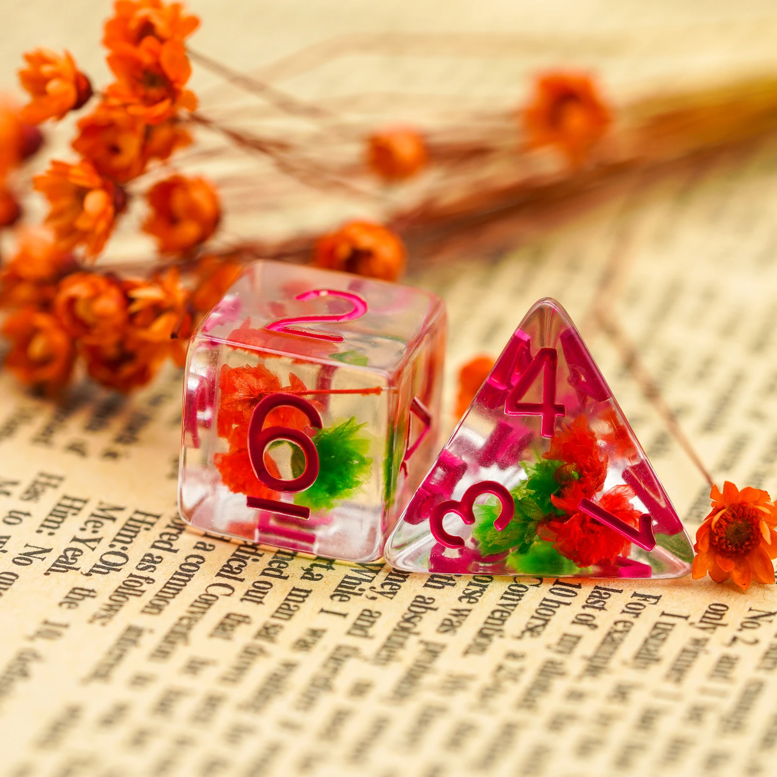 Это уникальный набор игральных костей на рынке, каждый кубик наполнен цветами, красивыми и великолепными.