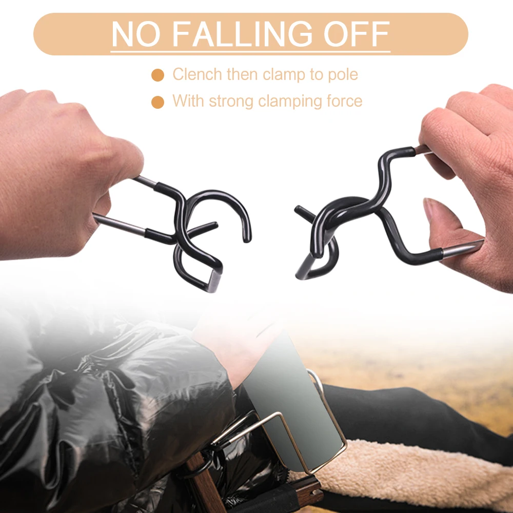 Эта вешалка из нержавеющей стали долговечна для использования вне дверей. Прижмите к полюсу, это поможет вам держать бутылку воды или лампу. Просто наслаждайтесь отдыхом на свежем воздухе с большим удобством.