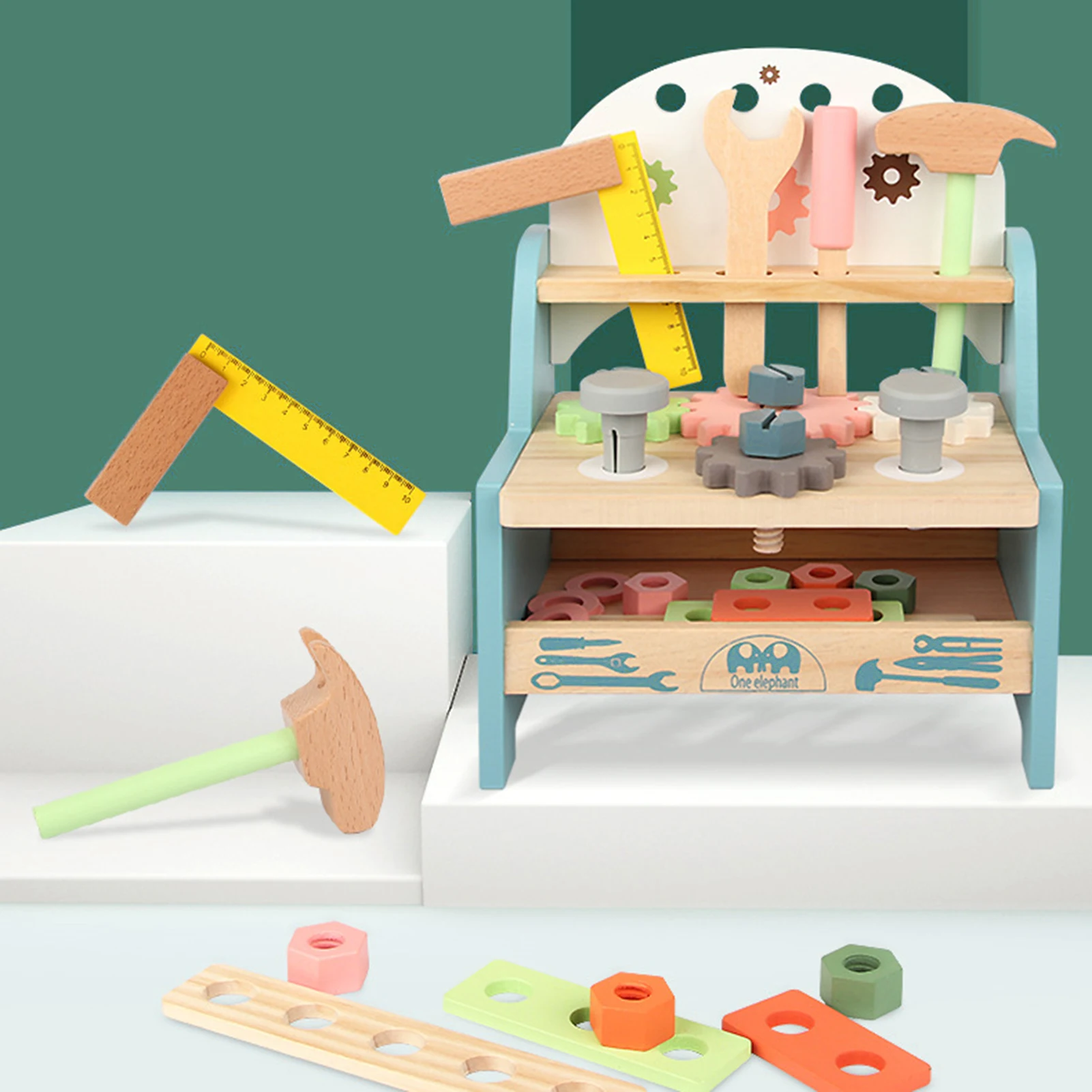 Помимо верстака, есть много других аксессуаров, которые вы можете получить, включая молоток, отвертку, гаечный ключ, тиски, линейку, винты, гайки, болты и шестерни, более творческие части для строительства.