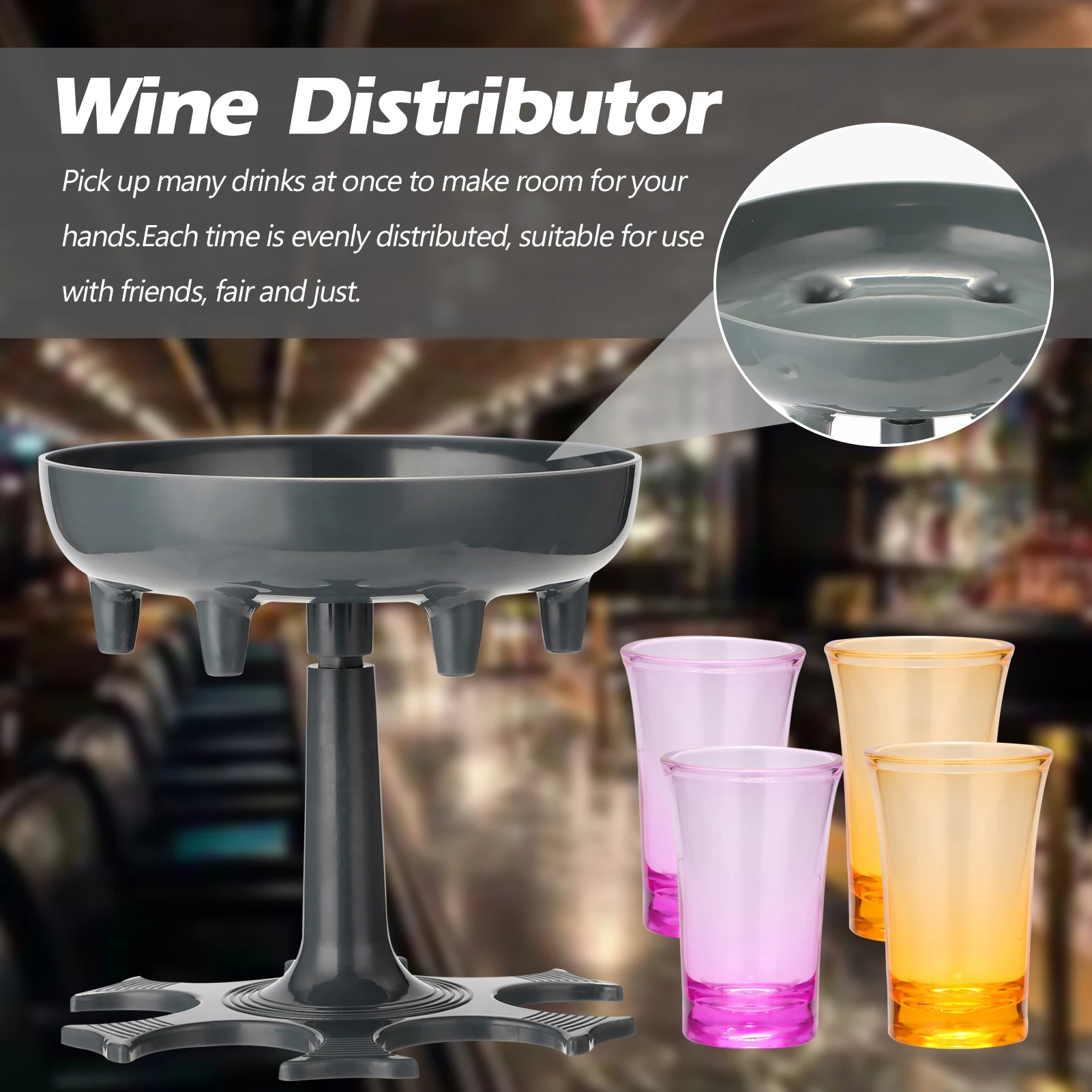 Чтобы заполнить шесть очков одновременно, равномерно и быстро, просто налейте жидкость сверху, и она попадет в очки через шесть Воронков.