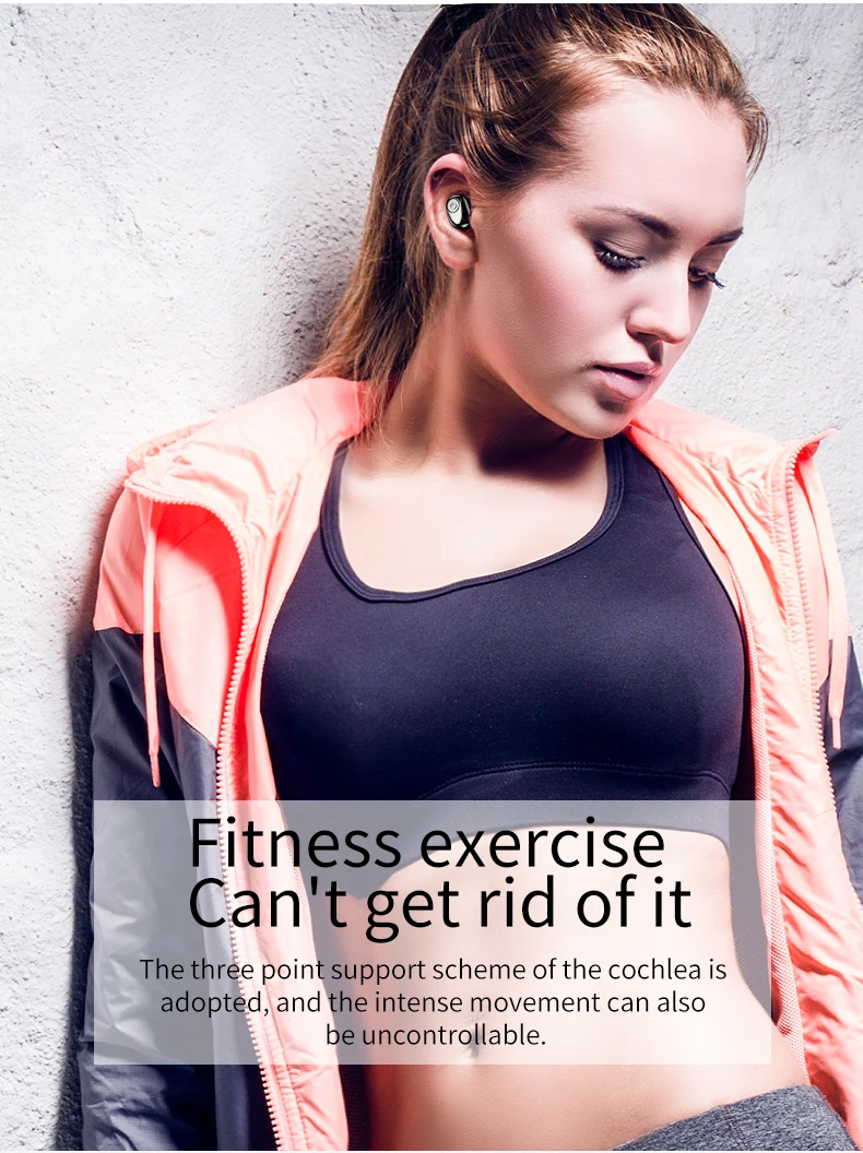 Беспроводные наушники Bluetooth бинауральные стерео HD музыкальные наушники спортивные вкладыши IPX5 водонепроницаемые с 2200 мАч зарядкой для телефона