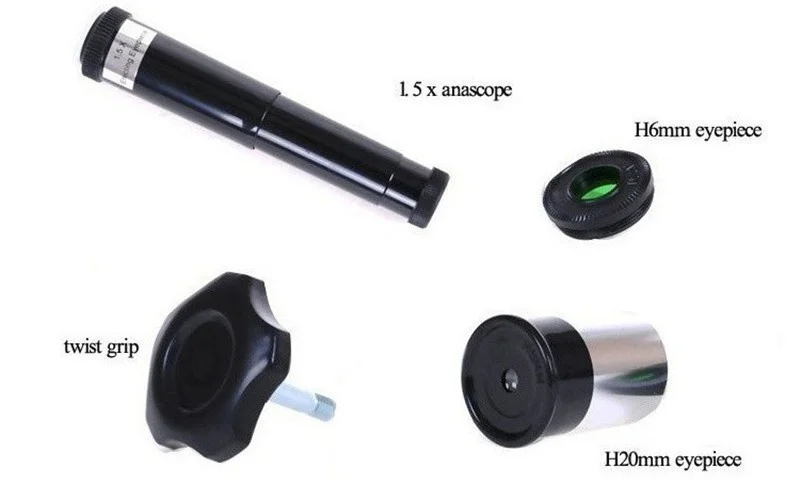 Алюминиевый штатив (высота 38 см)Различимость: 2,000 секунды дугиТеоретически, он может различать два товара между 0,97 см на расстоянии более 1000 м.Стандартный аксессуар включает: 90° Зенит Лен x 1,Eyepieces× 2 : H20 мм, H6 мм, 1,5 раз erector× 1 (для получения прямое изображение), луна, оптический светильник фильтр × 1, горизонтальный угол регулировки штанги.Максимальное количество: 90 раз ---- сможете четко видеть Луну!Для других возможных скоб: (фокусное расстояние составляет 300 мм)Окуляр х 6 мм только = 360/6 = 60 раз. В сочетании с 1,5 раз монтажный объектив = 50*1,5 = 90 раз выше, чем (хорошо подходит для наблюдения за луной ночью.)Окуляр h20 мм только = 360/20 = 18 раз. В сочетании с 1,5 раз монтажный объектив = 18*1,5 = 27 раз (хорошо подходит для предмета наблюдения в дневное время, как, например, птица видя, животных, прибор для наблюдения точечных целей, и т. д.)Примечание:1. Erector Len не может быть совместим с Zenith Len для использования.2. Для определения местоположения и нахождения небесного тела требуются базовые астрономические знания и терпение.(Внимание: никогда не пытайтесь наблюдать за солнцем непосредственно через телескоп, это сильно повредит ваш глаз!)