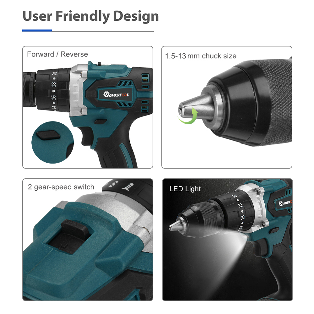 -20 + 3 режима, обеспечивает 20 режимов крутящего момента и 3 режима сверления Для высокоточной работы.