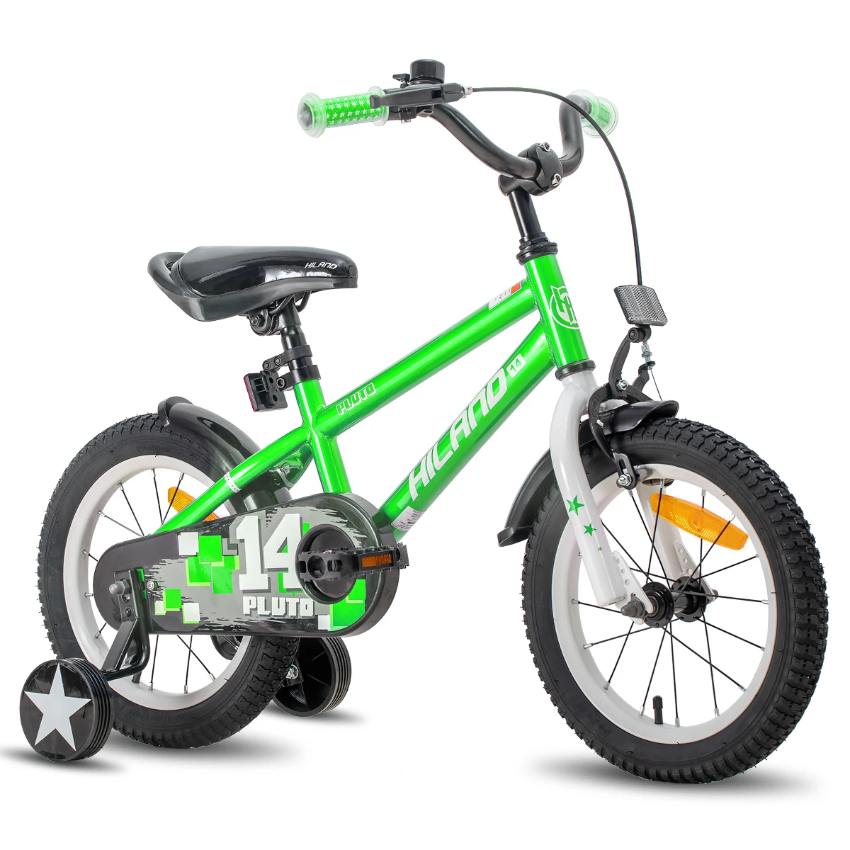 3. Оптимальная защита безопасности:Все наши велосипеды оснащены ручными тормозами и каботажными тормозами, а именно двумя независимыми тормозными системами для обеспечения безопасности вашего ребенка. Крышка цепи и протектор края руля защищают безопасность вашего ребенка.