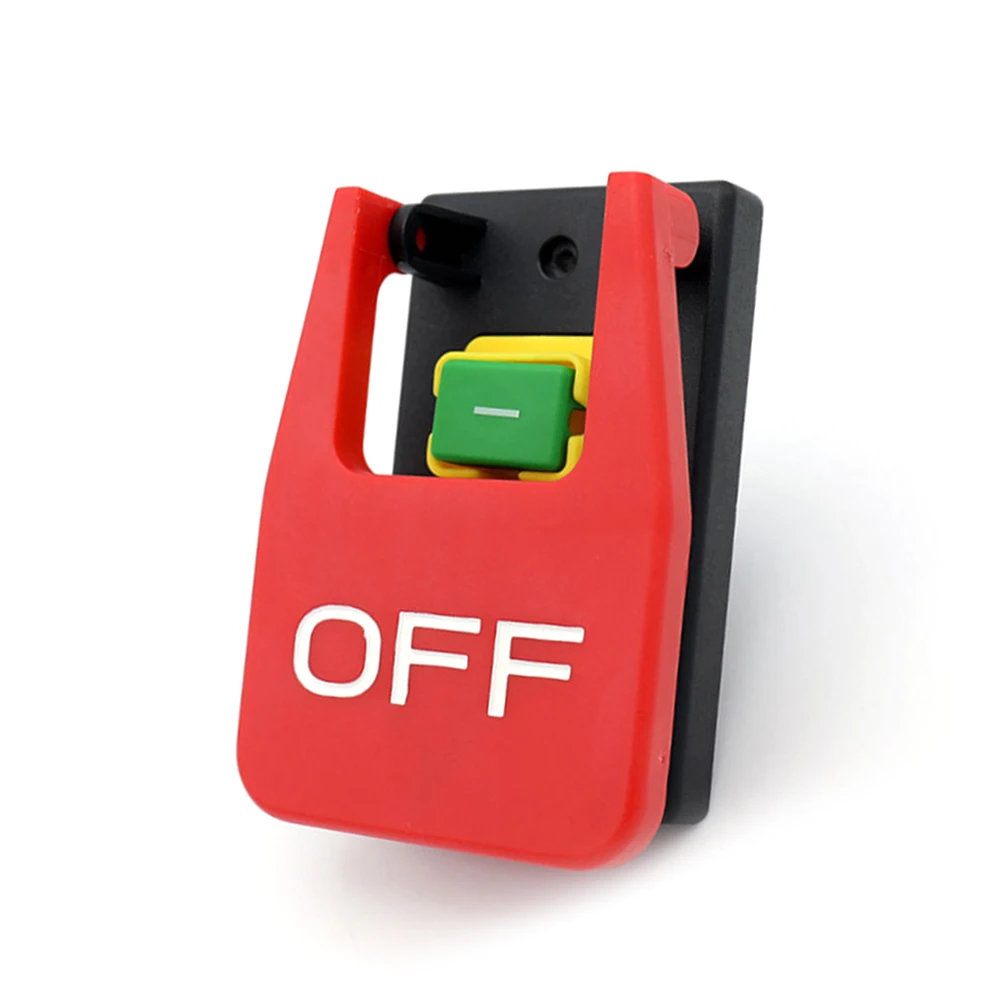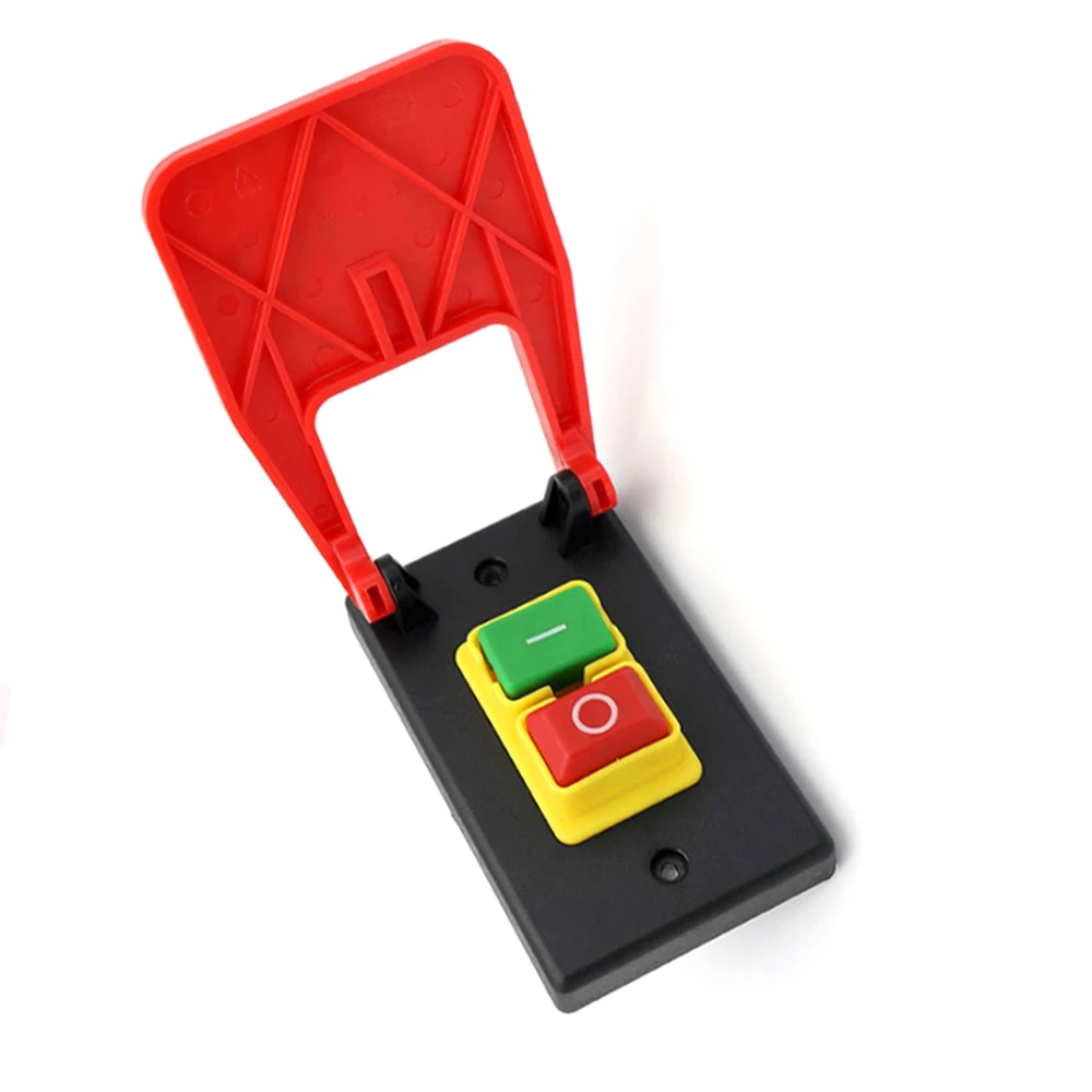 Широко используется в станках, крупномасштабных электроинструментах, садовой технике выше, принадлежность к переключателю безопасности, устройство не включится после выключения питания неожиданно, необходимо нажать зеленую кнопку пуска.