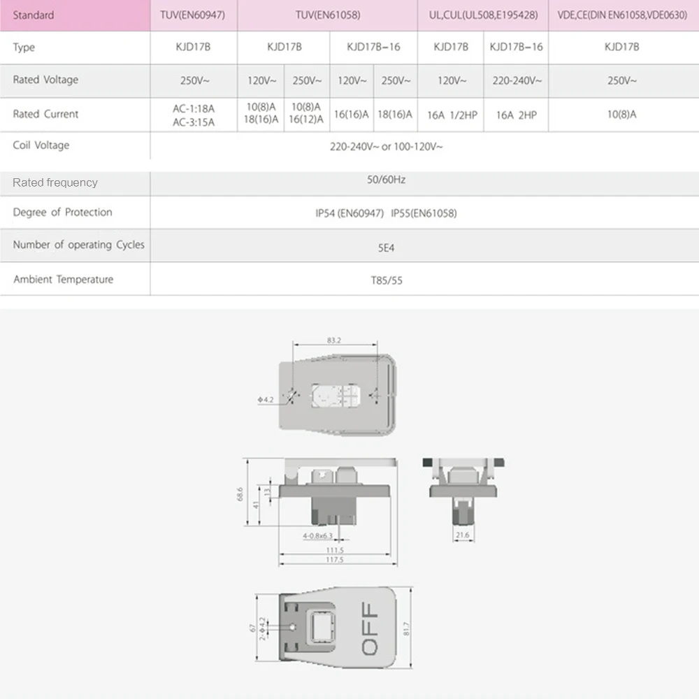 Номинальный ток: 18A(AC-1) 15A(AC-3)