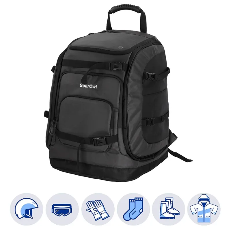 Вместительная сумка для лыжных ботинок soarowl объемом 50 л, размеры 18,1x15x14,2 дюйма (46*38*36 см), И способна хранить нам мужские ботинки до 12,5 размера. Он достаточно большой для хранения ботинок, шлемов, очков, одежды, ценных вещей и многого другого. Если у вас есть много оборудования для хранения и транспортировки, эта сумка обязательно выполнит свою работу.