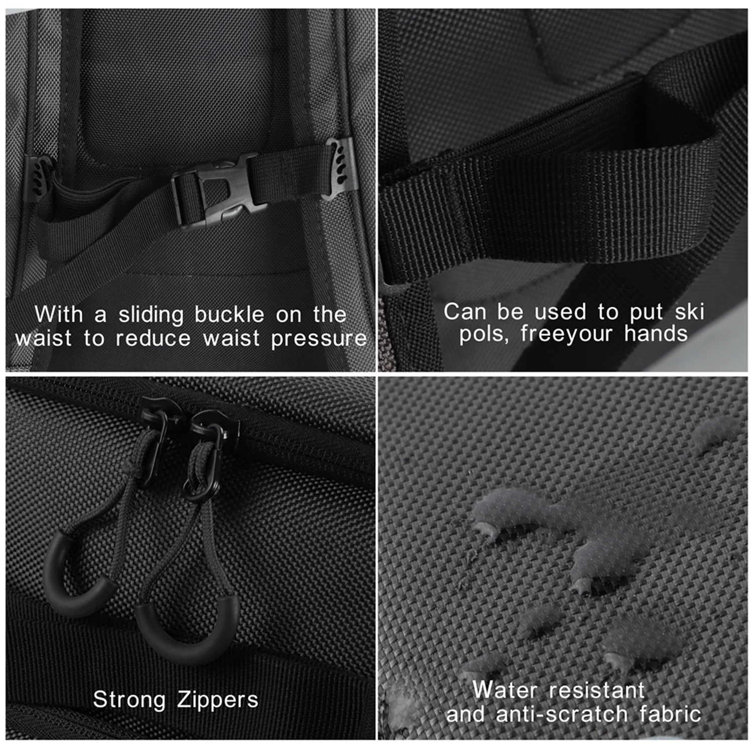 [Эксклюзивные особенности элемента] плотный силиконовый мягкий рюкзак с регулируемой системой никогда не врезается в плечи и ему удается держаться на спине, независимо от того, насколько сильно вы двигаетесь. Ремень рюкзака оснащен шнурком для лыжной палки, что более удобно для вас в путешествиях. Ремни для регулировки кнопок на лицевой и левой и правой сторонах лыжной сумки можно использовать для того, чтобы поставить лыжи, будь то двойной борт или одинарная доска, вы можете легко убрать ее.