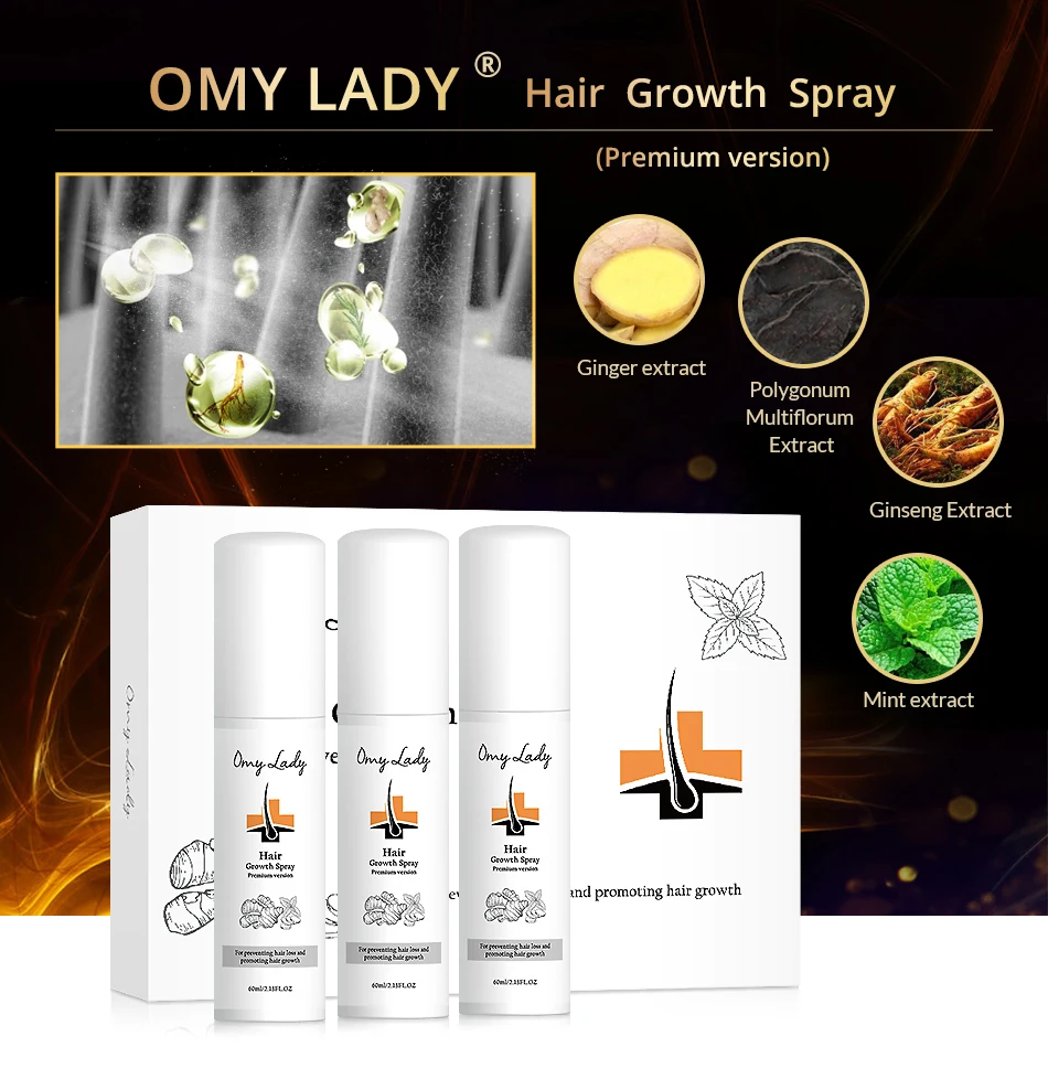 OMY LADY®Спрей для роста волос, принимающий экстракт женьшеня, экстракт Анжелики, экстракт полигонума мультифлурума, обрабатывается высокотехнологичным биологическим проектом SFE путем извлечения активных ингредиентов в действии среди этих трав. Этот продукт имеет свой уникальный и точный рецепт, изысканное сырье и идеальное ремесло. Обладает функциями ускорения кровообращения на коже головы, повышения массажности волосяных фолликулов и корней, отек волос, качество волос, эффективен для всех видов выпадения волос.