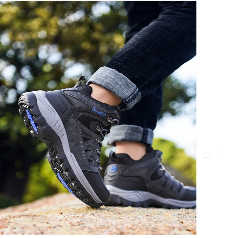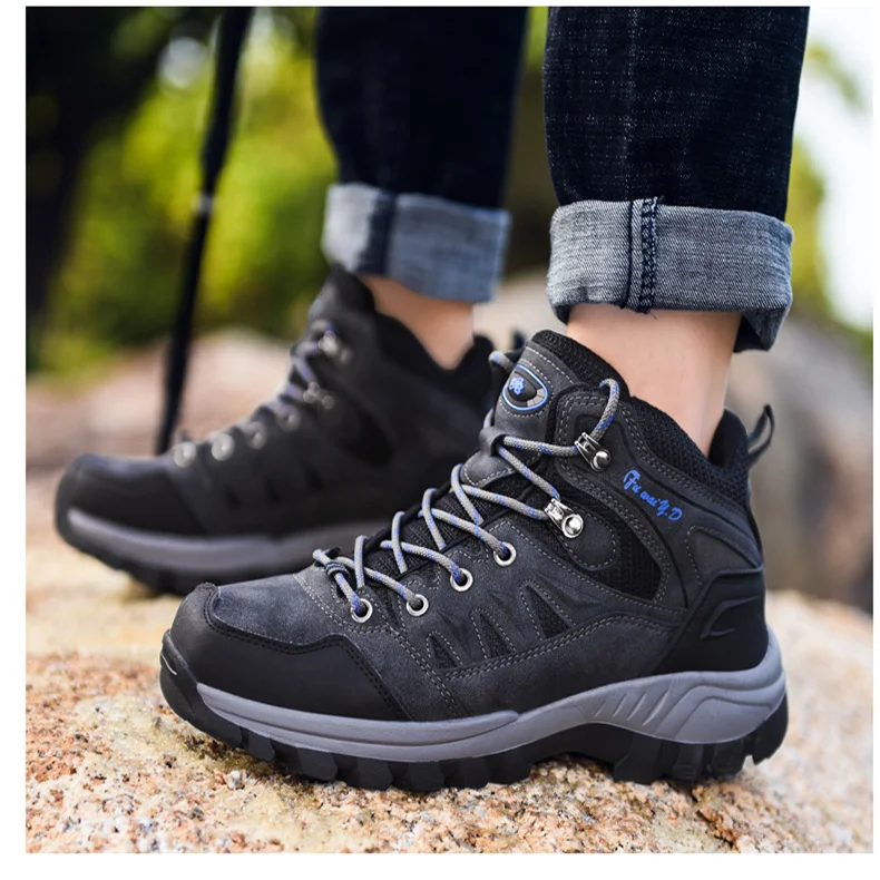 Big size Brown Hiking Boots Men Light Comfortable Men Trekking Shoe Travel Shoes High top Hiking Shoes Women Camping Sports