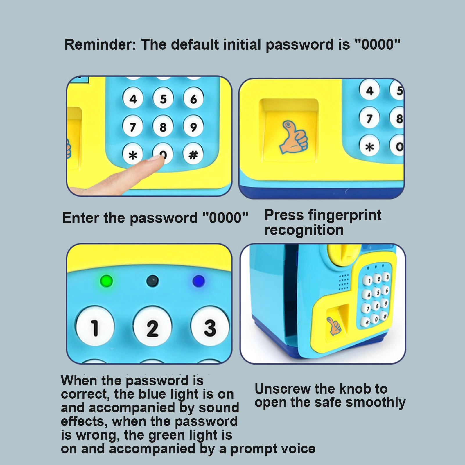Этот Копилка может быть разблокирован идентификацией пароля, и пароль может быть изменен в любое время.