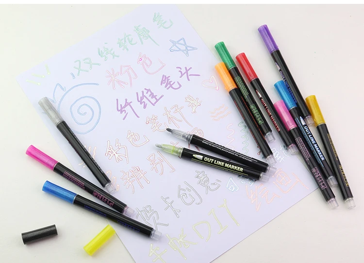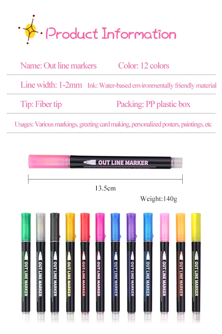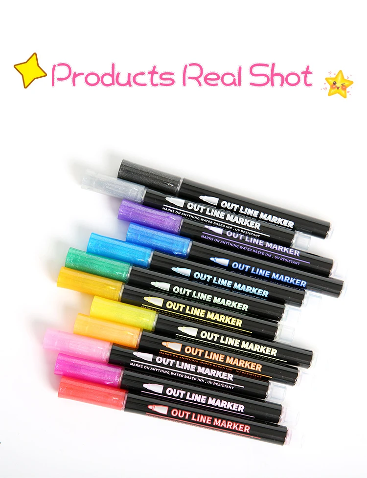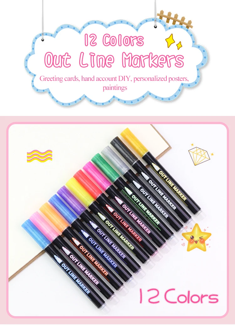 Сделай Сам металлический блестящий маркер, маркер, 12 видов цветов, рисование, рисование, контур, маркер для альбома/ручного счета/граффити, принадлежности