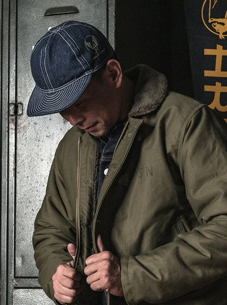 Изначально он был выдан механикам и инженерам во время Второй мировой войны. Во время Второй мировой войны, когда используется в качестве рабочей крышки для механики земли, плоские и широкие поля были особенностью крышки, которая эффективно защищала солнце. Простой, но функциональный дизайн A-3 колпачка стал популярнее, что привело к его использованию другими частями американских военных.