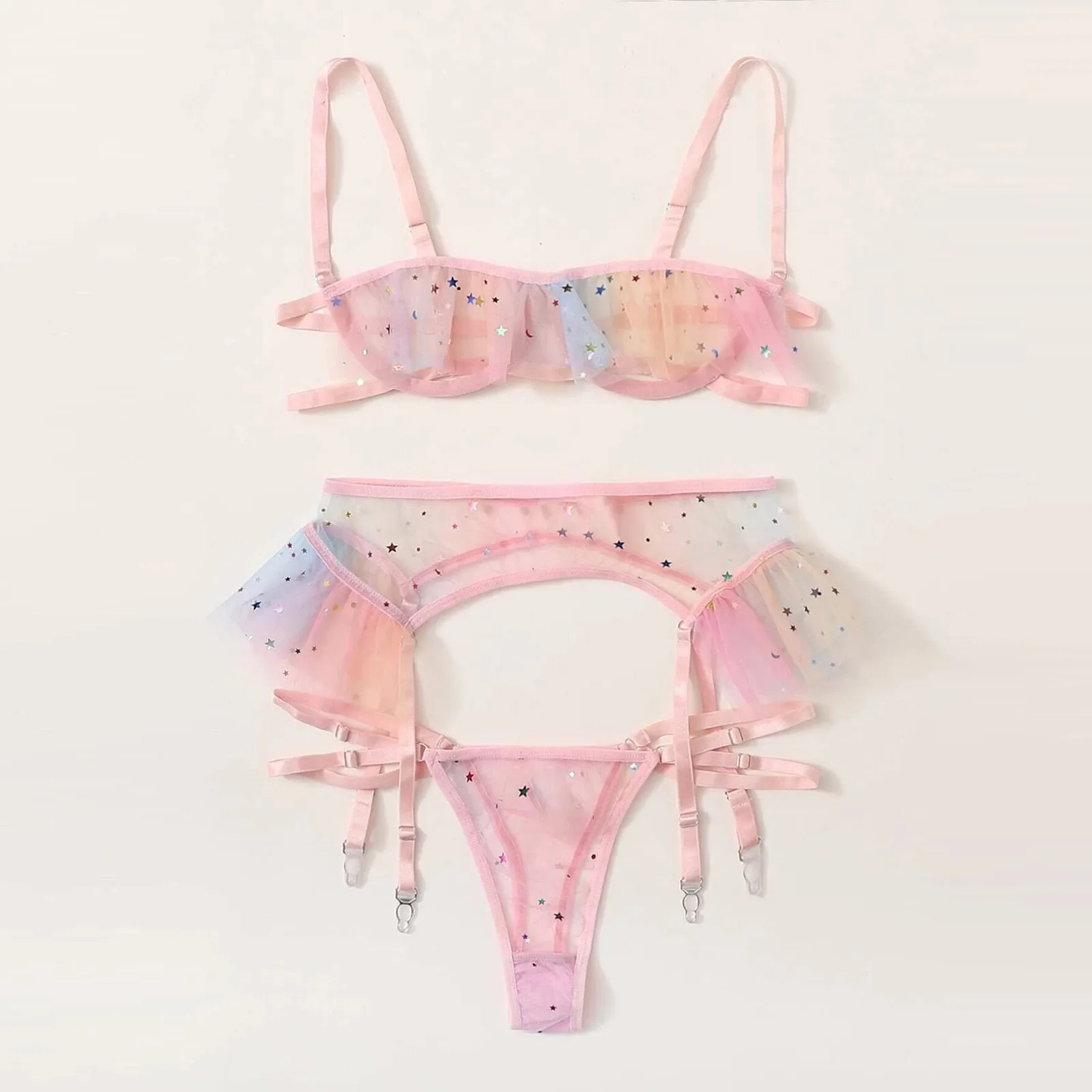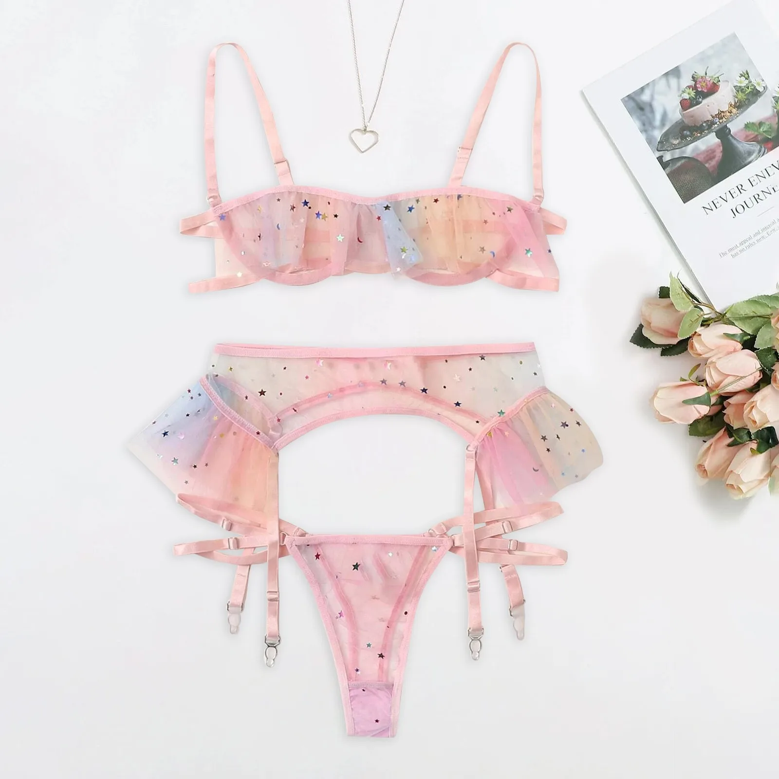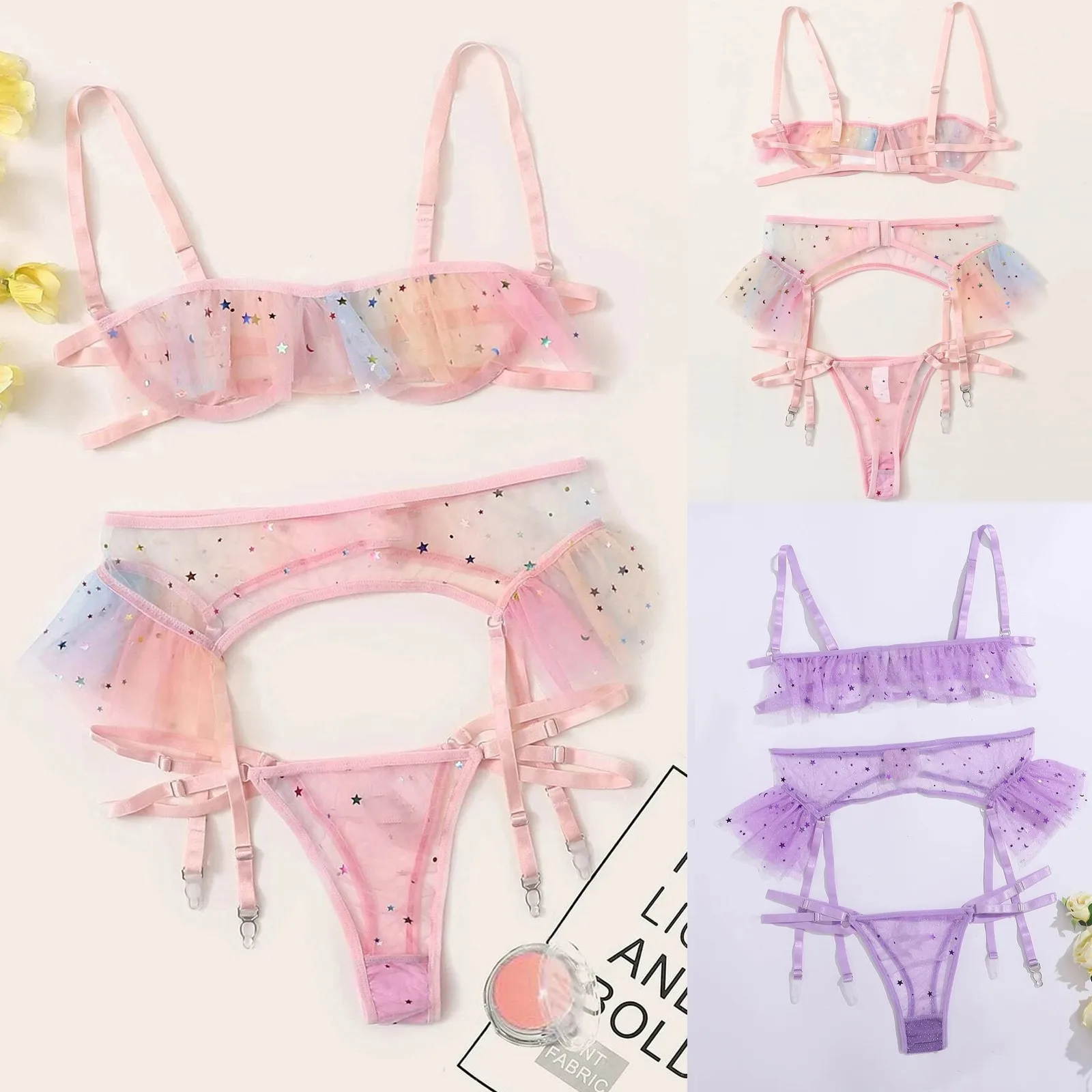 Пояс-подвязка для нижнего белья с красочным принтом Звезда Луна трусики "Тонг" с вышивкой соблазн