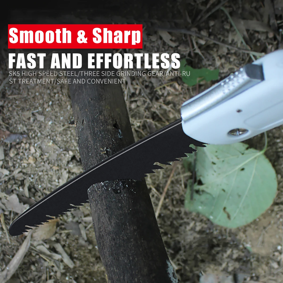 Применение: компактный, легкий и складной удобный инструмент для кемпинга, обрезки, лесозаготовки, деревообработки и домашнего диера.
