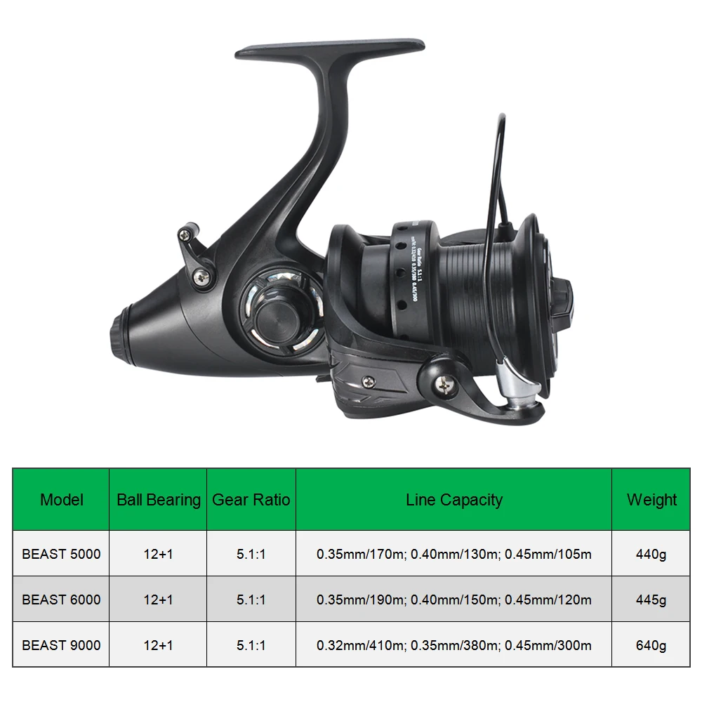 This spinning reel features front and reel double drag system, powerful fishing tackle for anglers.